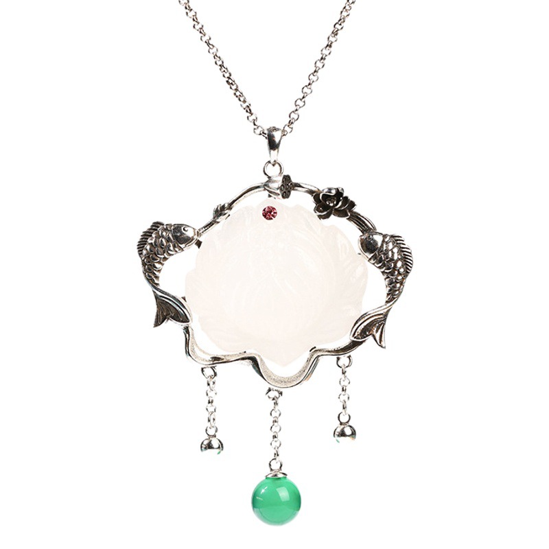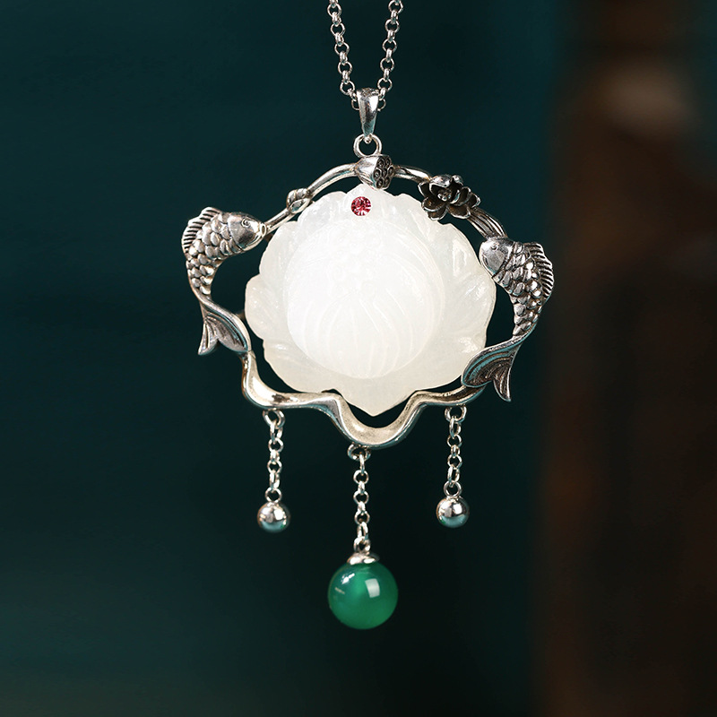 Chao new Chinese style cheongsam accessories fish Yueyongmen Lianpeng Guofeng elegant niche design imitation Jade retro necklace
