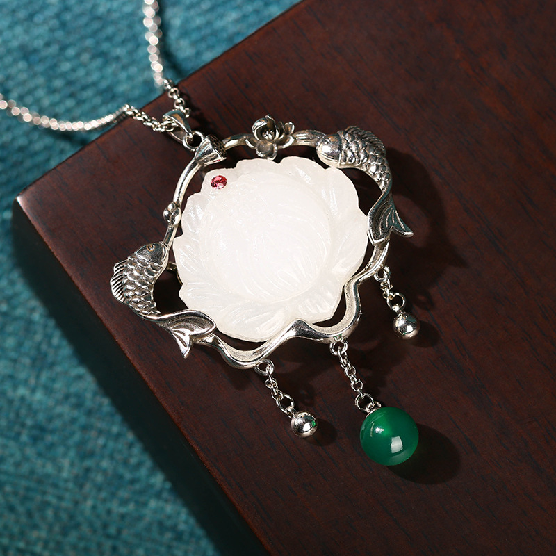 Be the first to review “Chao new Chinese style cheongsam accessories fish Yueyongmen Lianpeng Guofeng elegant niche design imitation Jade retro necklace”