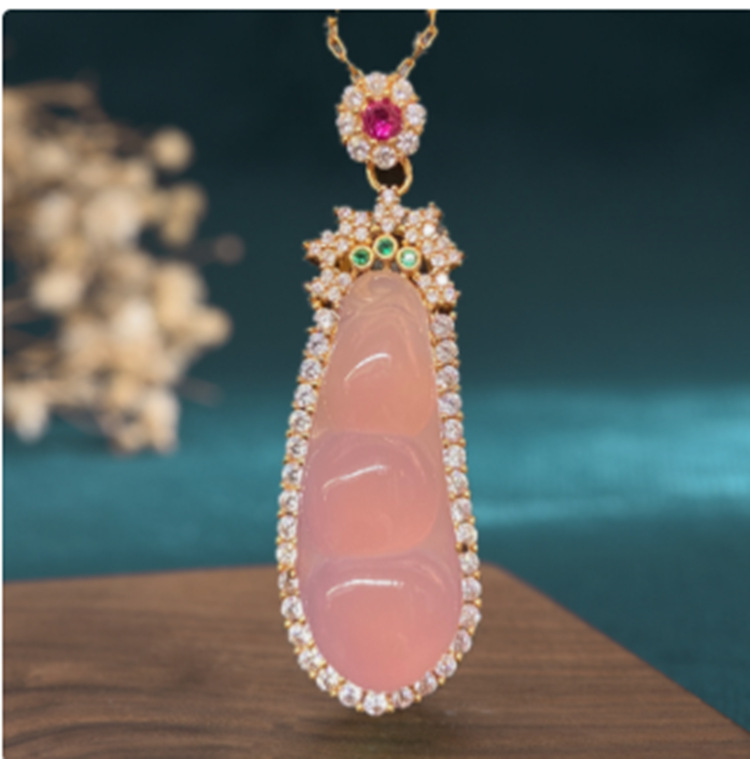 Be the first to review “Chinese Style Ancient Costume Jewelry Ice Fluorescent Chalcedony Bean Pendant Inlaid with Green Jade Green Bean Jade Pendant Necklace for Women”