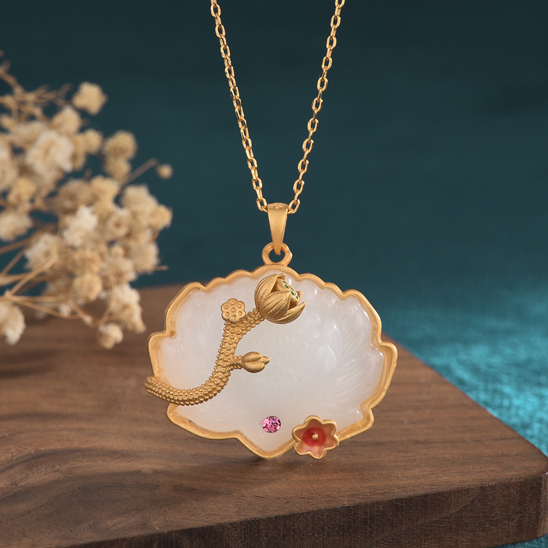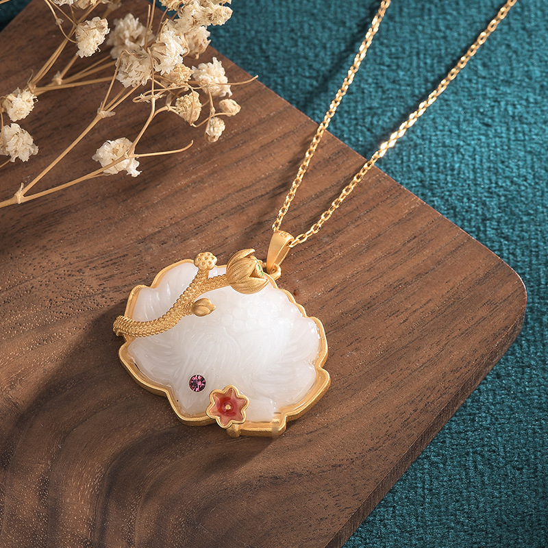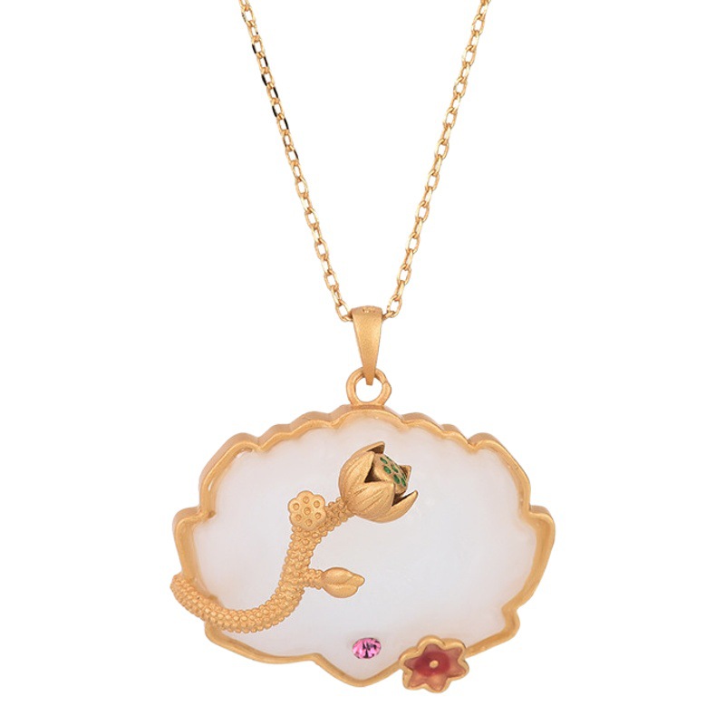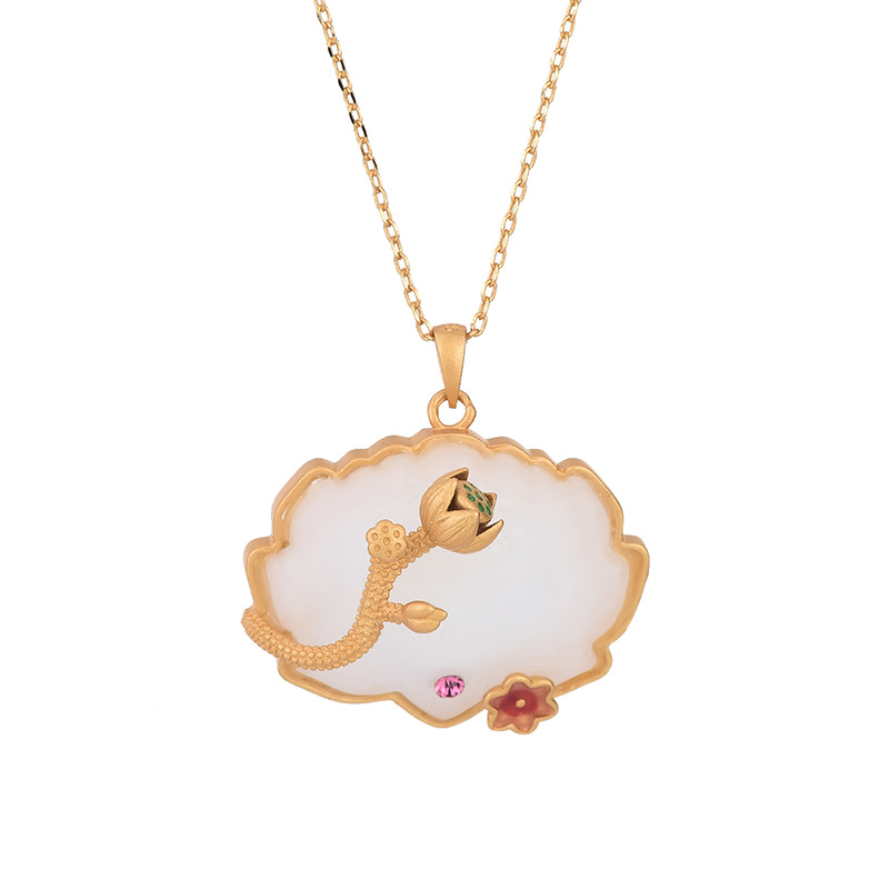 Be the first to review “Chinese Style Classical Cheongsam Hanfu Accessories Enamel Painted Inlay Imitation Hetian Jade Lotus Lotus Pendant Necklace”