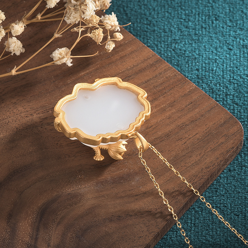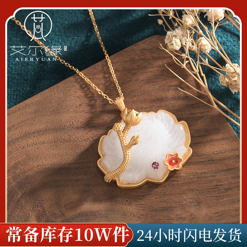 o1cn01bbasfy1bs2vnnilpk 0 0 cibChinese Style Classical Cheongsam Hanfu Accessories Enamel Painted Inlay Imitation Hetian Jade Lotus Lotus Pendant Necklace
