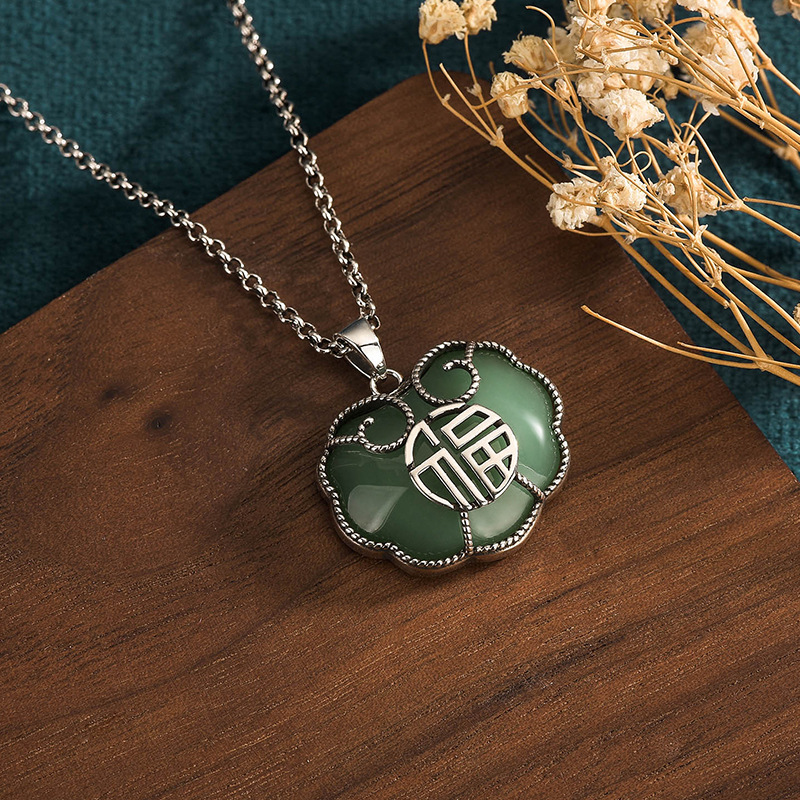 Chinese Style Classical Palace Elegant Simple Electroplated Thai Silver Retro Fu Character Ping An Lock Hetian Jade Pendant Necklace for Women