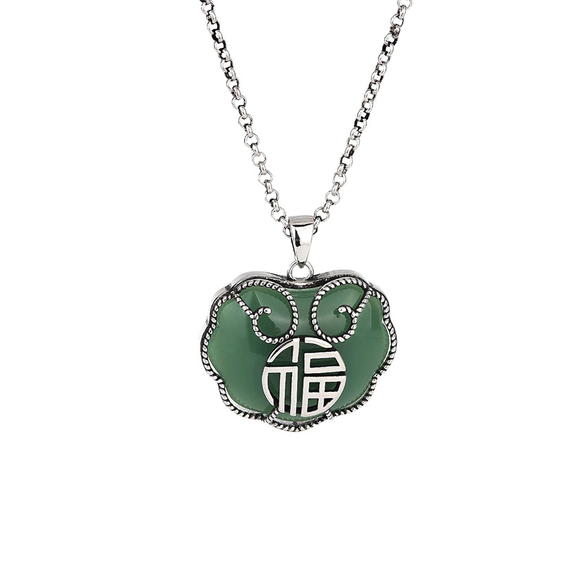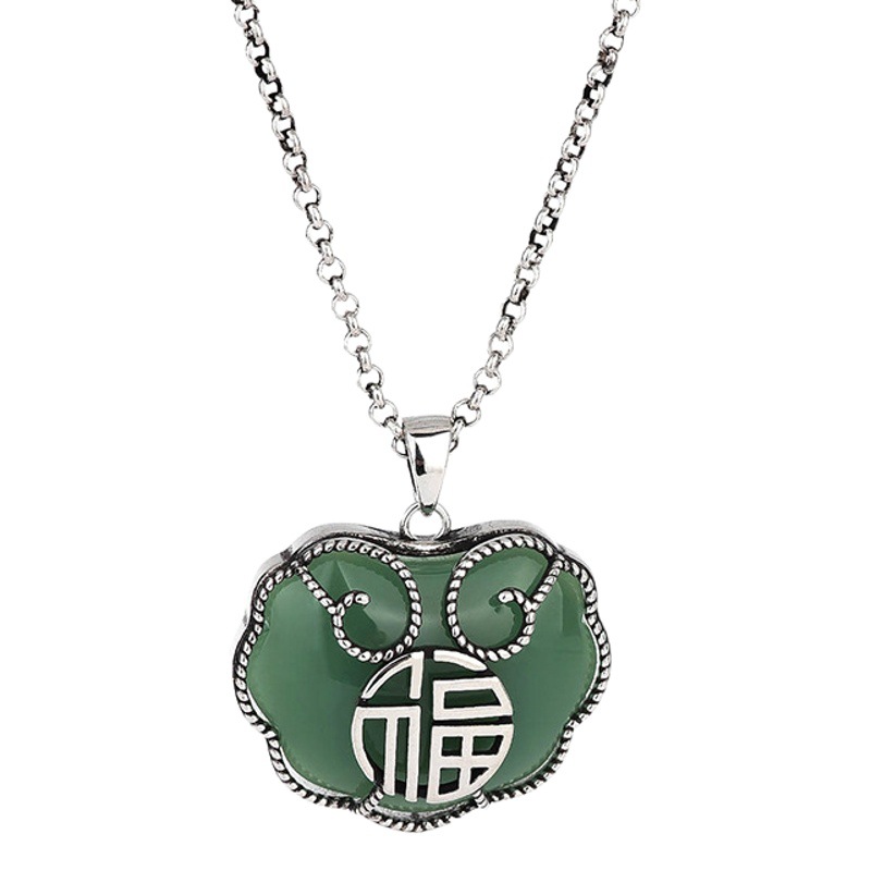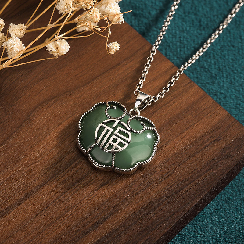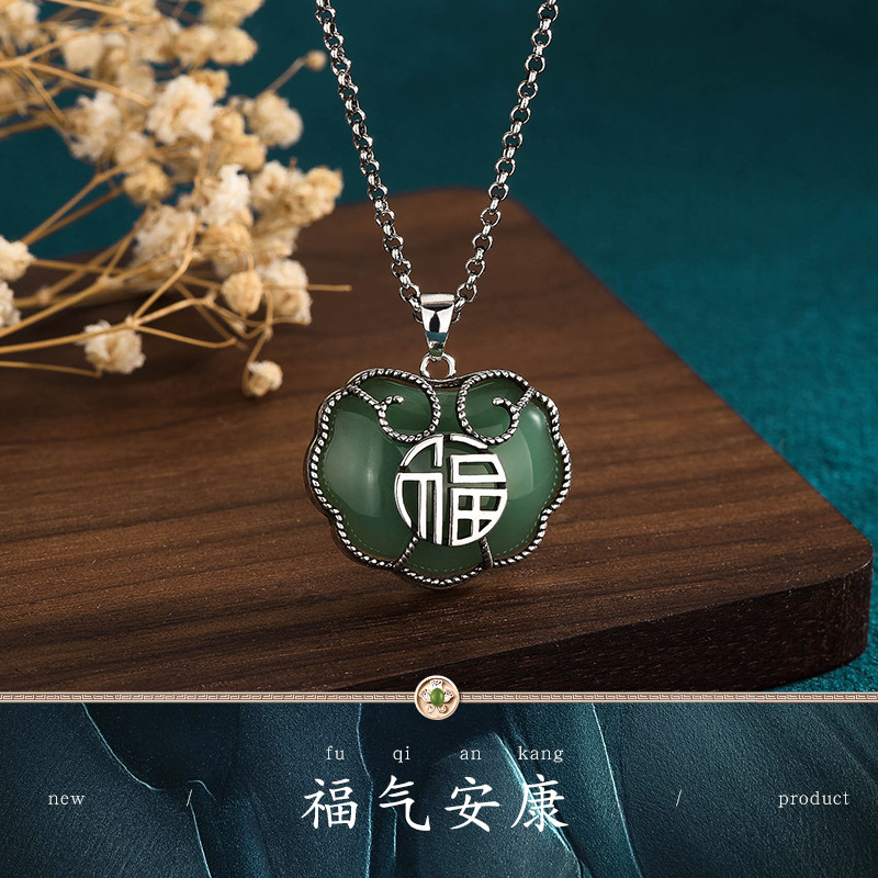 o1cn01ipuqw31bs2vlbe7tp 0 0 cibChinese Style Classical Palace Elegant Simple Electroplated Thai Silver Retro Fu Character Ping An Lock Hetian Jade Pendant Necklace for Women
