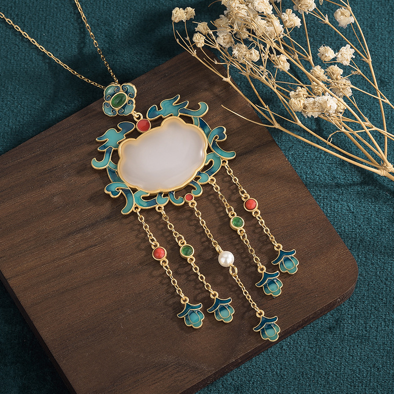 o1cn011gtaig1bs2upayfzc 0 0 cibChinese Style New Year Accessories Ancient Method Gold Plated Synthetic Hetian Jade Peace Lock Ruyi Fortune Bag Tassel Collarbone Necklace Women