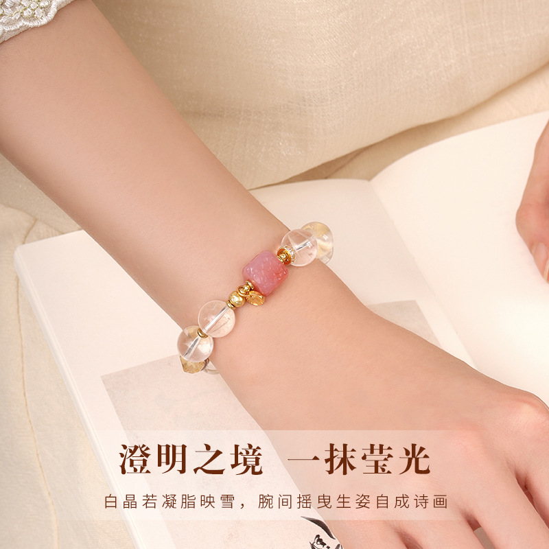 Chinese Style Sweet Lady Style White Crystal Bracelet for Women New Chinese Style Crystal Bracelet with Black Gold Super Seven Bracelets Wholesale