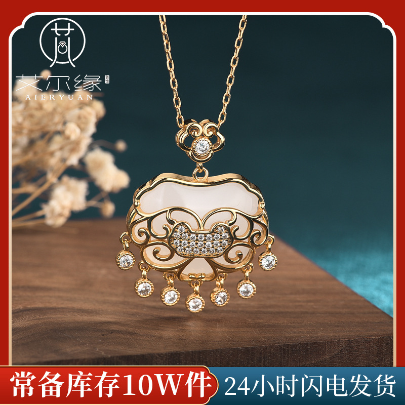 Be the first to review “Chinese Style Vintage Jade Pendant Ancient Costume Hanfu Matching Necklace Ruyi Ping An Lock Imitation Hetian Jade Necklace for Women”