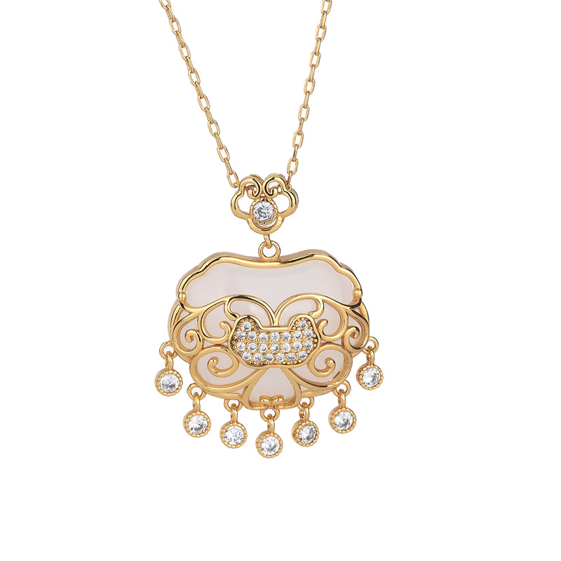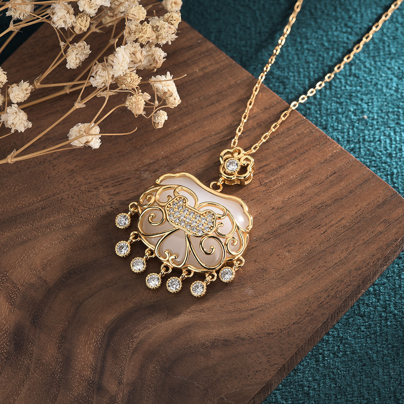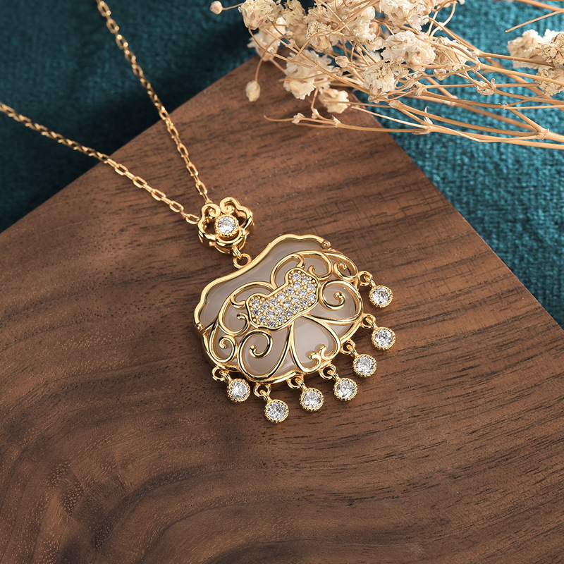 Chinese Style Vintage Jade Pendant Ancient Costume Hanfu Matching Necklace Ruyi Ping An Lock Imitation Hetian Jade Necklace for Women