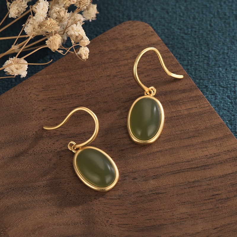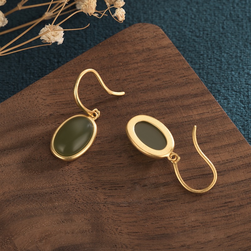 Creative Design New Style Simple Jade Earrings Ancient Method Gold Inlay Imitation Hetian Jade Pendant Hanfu Cheongsam Earrings