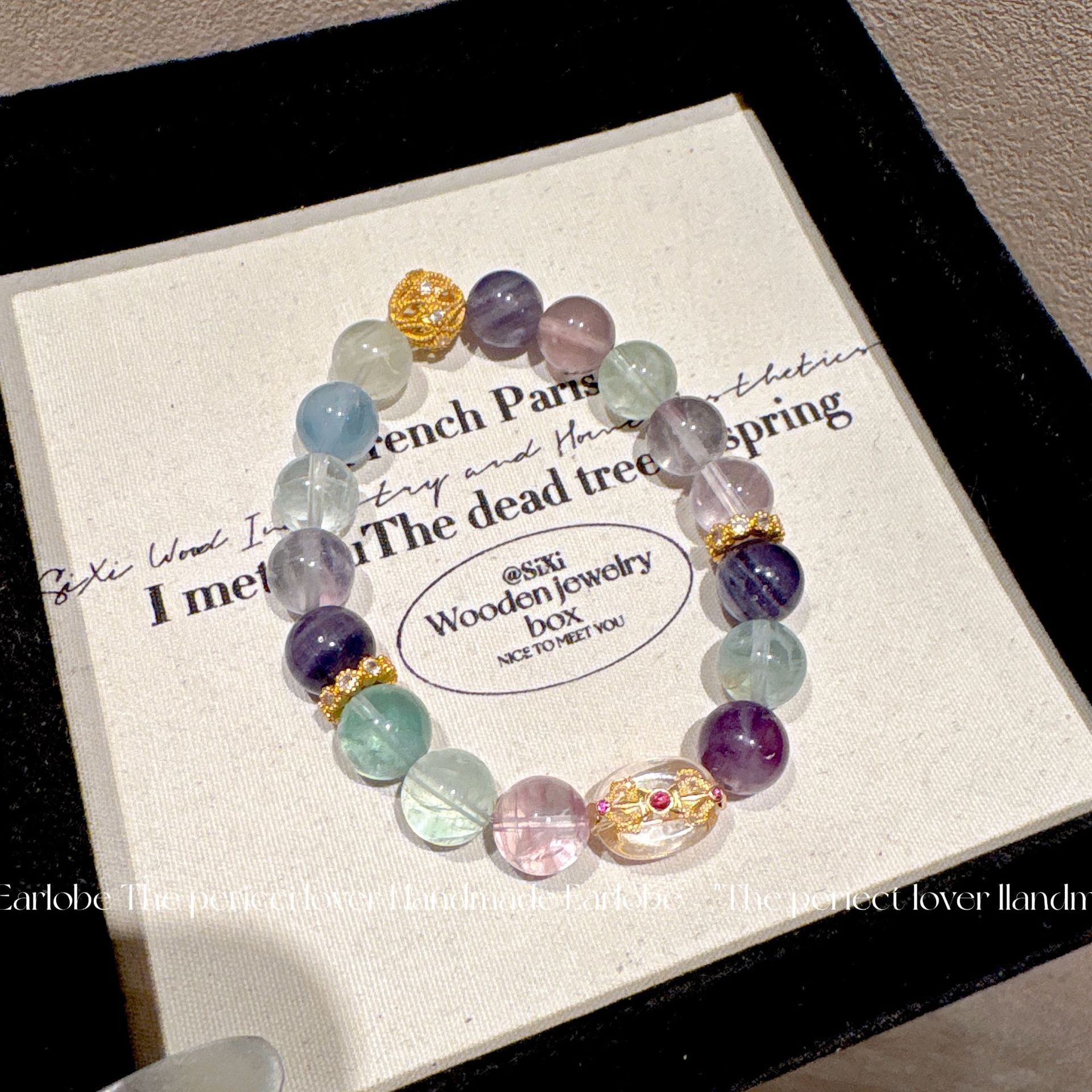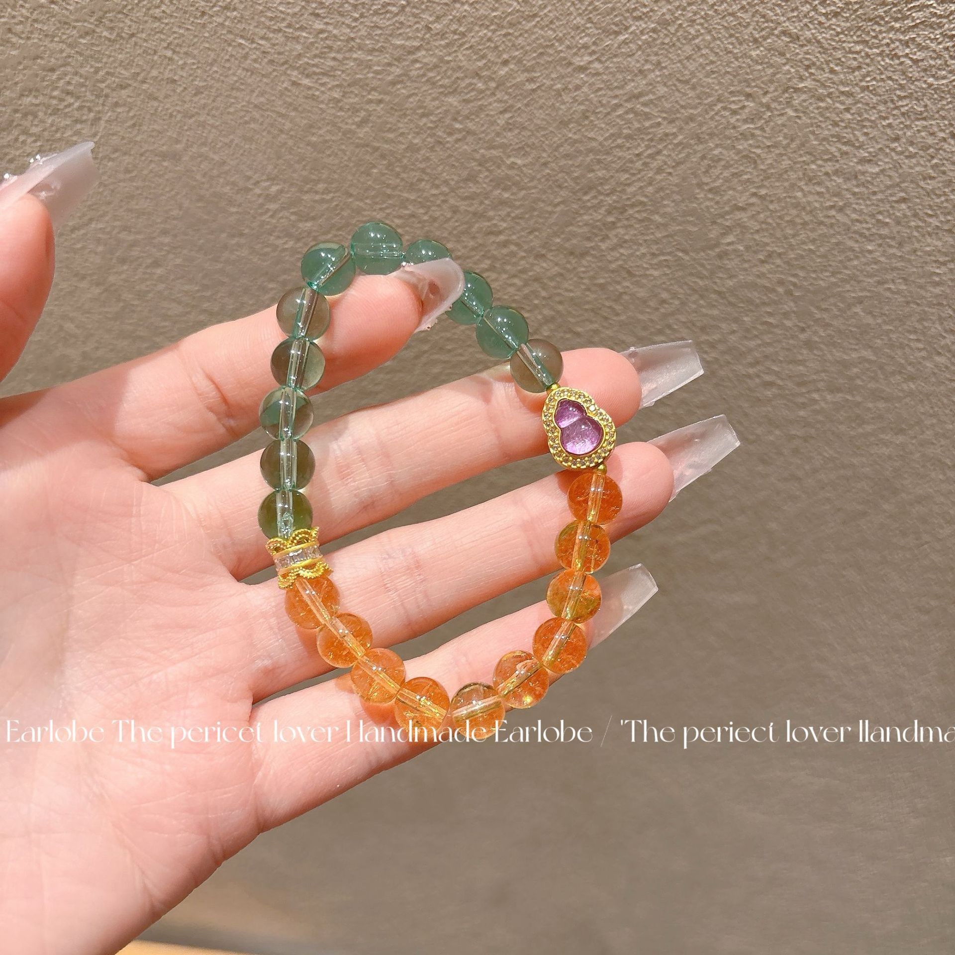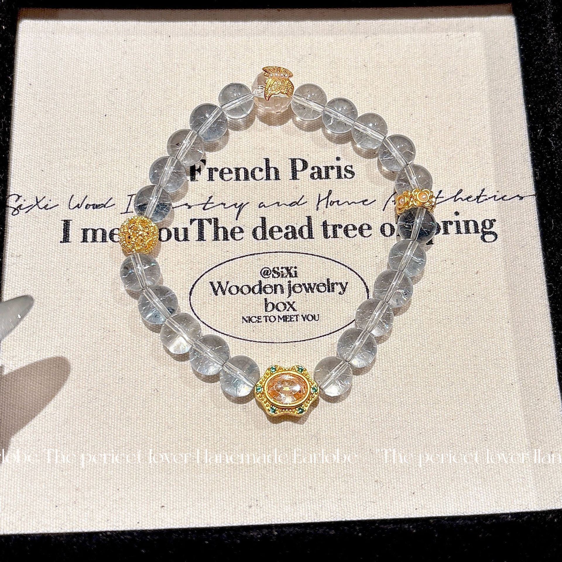 Dreamy, Exquisite and High-Looking Sand Gold Colorfuled Natural Stone Crystal Geometric Flower Bracelet Combination, White and Fresh Hand Ornaments