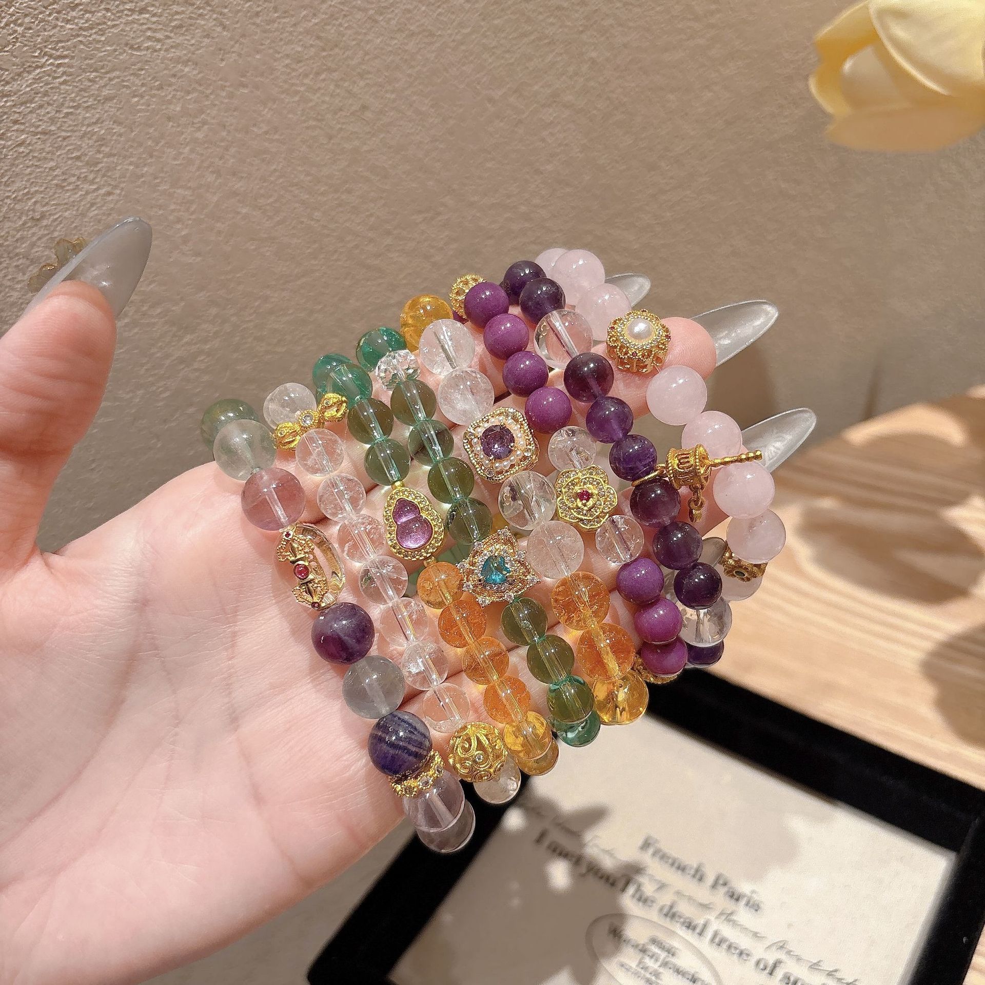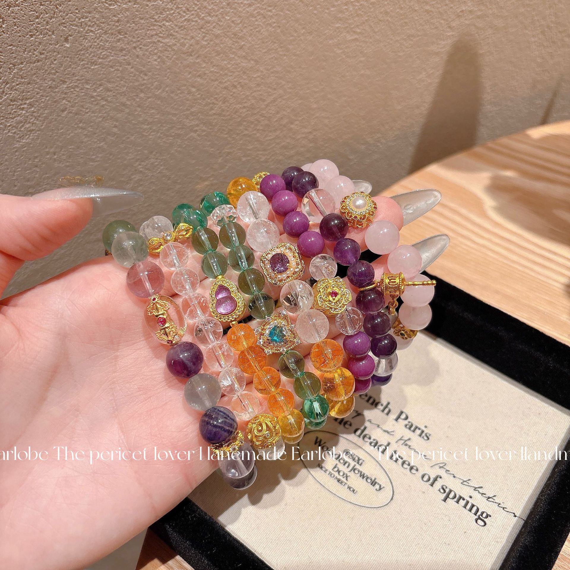 Alluvial gold white crystal natural cotton texture amethyst zircon long vajra bracelet (elastic cord), Sand gold yellow white crystal natural explosion pattern pearl zircon square bracelet (elastic cord), Alluvial gold peach pink natural stone pearl embroidered ball flower oval bracelet (elastic cord), Alluvial gold amethyst bouncing beads zircon round bracelet (elastic cord), Alluvial gold double layer rose pink garnet pearl hollow gourd flower bracelet (elastic cord), Alluvial gold mint green white crystal zircon love earrings (elastic cord), Alluvial gold rose pink zircon crystal pearl butterfly rhombus bracelet (elastic cord), Alluvial gold green zircon crystal pearl butterfly rhombus bracelet (elastic cord), Alluvial gold pink purple natural stone pearl zircon gourd flower bracelet (elastic cord), Alluvial gold purple natural stone crystal pearl love butterfly flower bracelet (elastic cord), Alluvial gold purple natural stone crystal zircon hollow flower butterfly bracelet (elastic cord), Alluvial gold contrasting crystal zircon gourd bracelet (elastic cord), Alluvial gold multi-color natural stone crystal geometric vajra bracelet (elastic cord), Alluvial gold purple natural stone crystal prayer wheel flower bracelet (elastic cord), Sand gold yellow white crystal hollow gourd vajra flower ball bracelet (elastic cord), Alluvial gold peach pink natural stone hollow geometric bracelet (elastic cord)