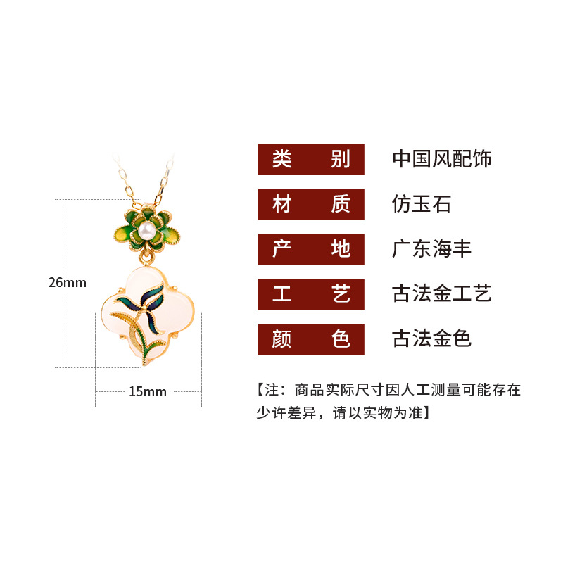 o1cn01iuv61y1bs2vmh2tmu 0 0 cibElliot Chinese Style Ancient Method Gold Imitation Jade Pendant Women’s Summer High Sense Grade Four-leaf Clover Niche Collarbone Necklace Women