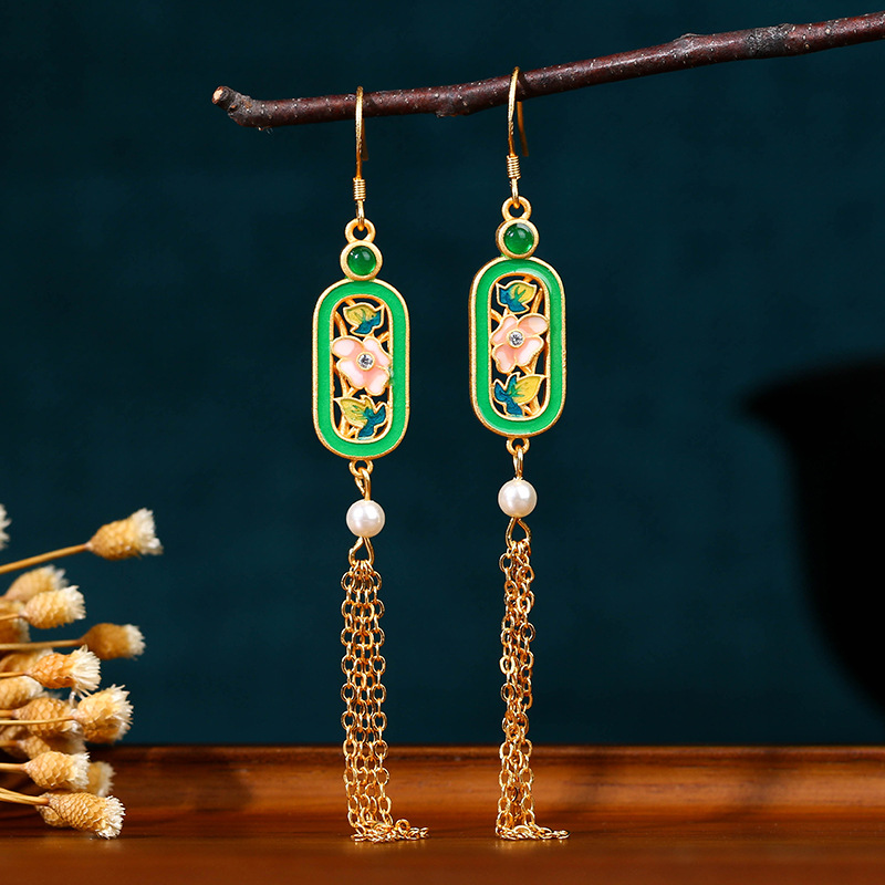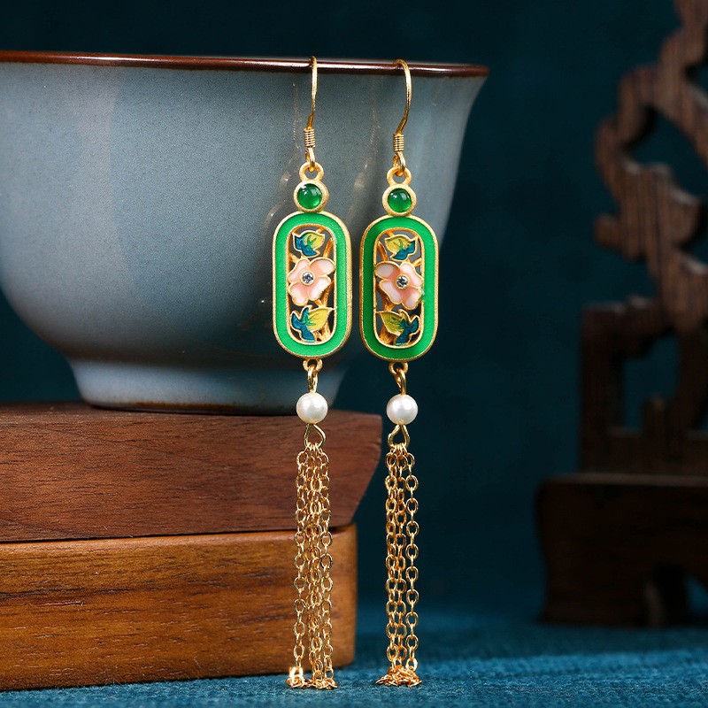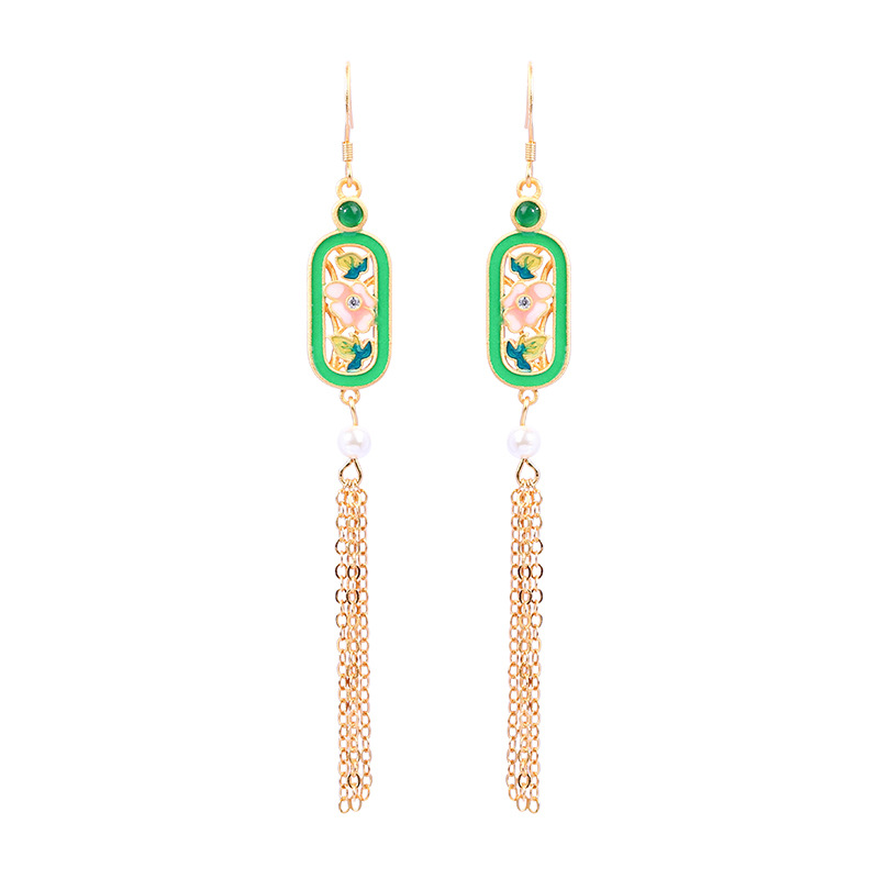 o1cn01vqdbjy2nqoxuyttmq 2200655039958 0 cibElyuan original design national trend air-cooled enamel high-grade round face slimming imitation jade pearl tassel earrings