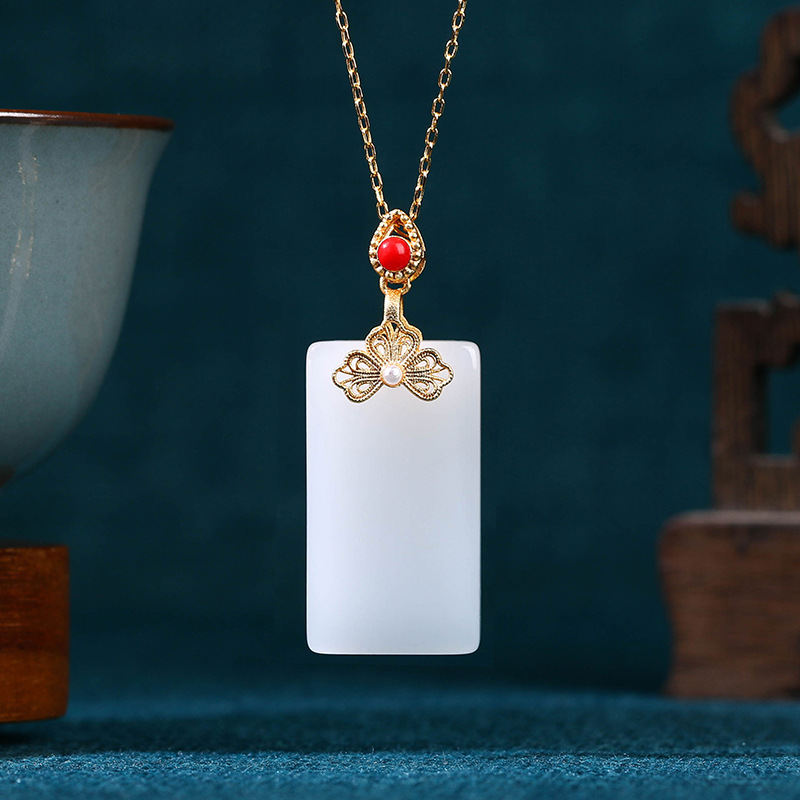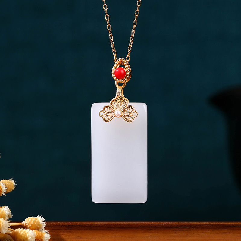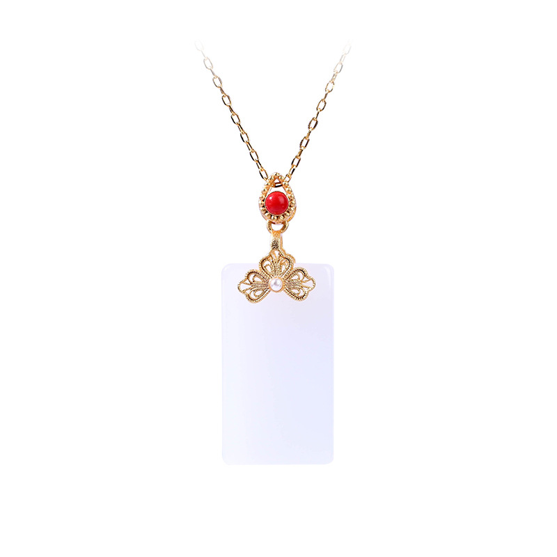Be the first to review “Elyuan original national fashion design ancient gold-plated feeling good luck Lotus free square brand non-imitation Hetian jade necklace”