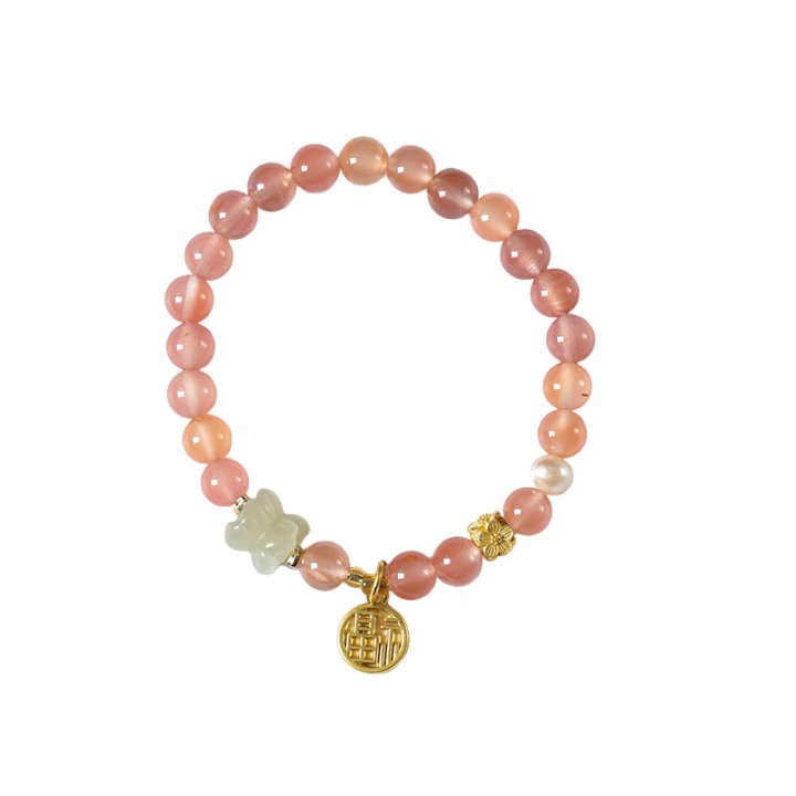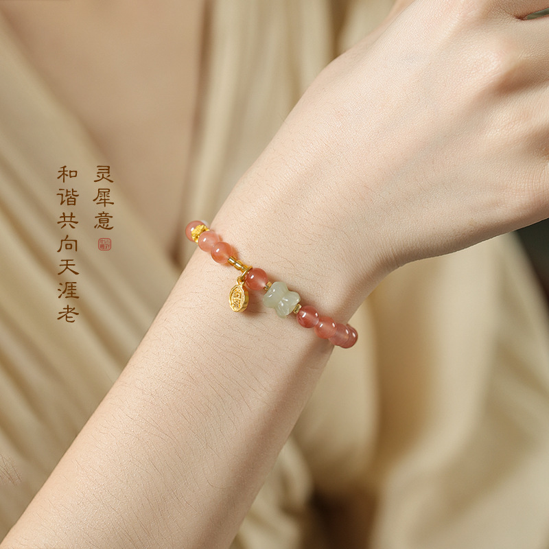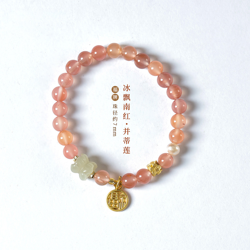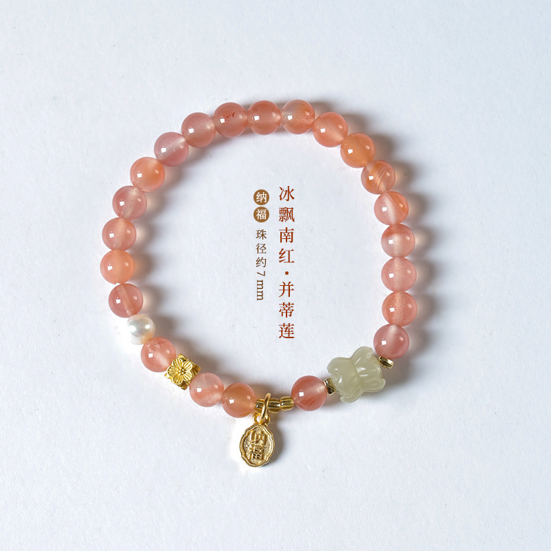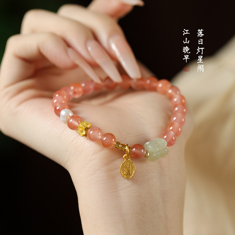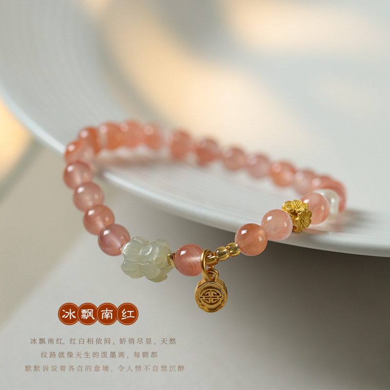 Fairy sweet and delicate ice floating south red cherry red agate DIY with sunny water Hetian jade and Tiilian good luck bracelet