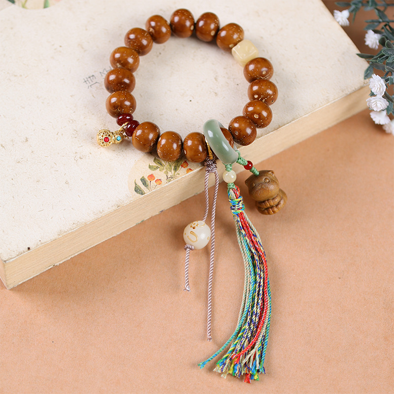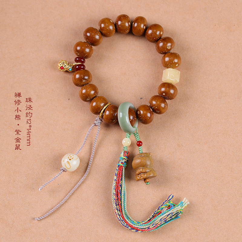 Five-mouse lucky purple golden mouse Bodhi rosary DIY national fashion ethnic style hand-woven hemp rope meditation cute bear bracelet