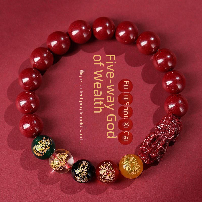 Five-way God of Wealth Cinnabar Bracelet Transfer Bead Bracelet This Year of Life for Men and Women Gift Opening Jewelry Bracelet