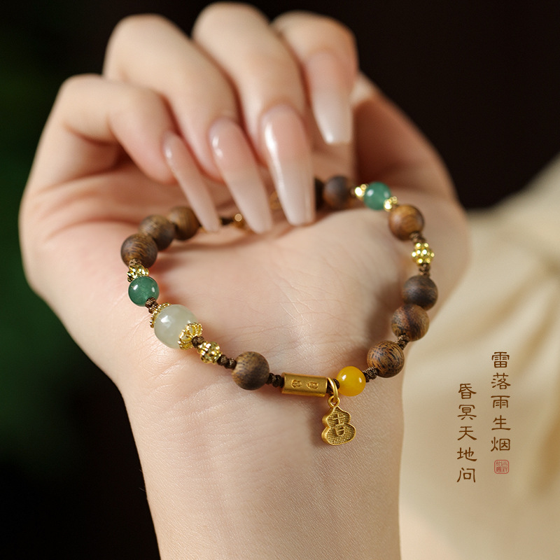 o1cn01yvxtlh1xm1iqt7ctz 2207533192965 0 cibFresh literature and art national style female temperament single circle aloes ancient method sand gold road tong fu lu bing floating south red folded bracelet