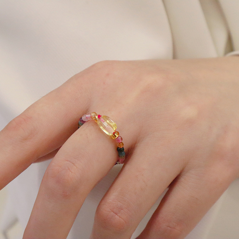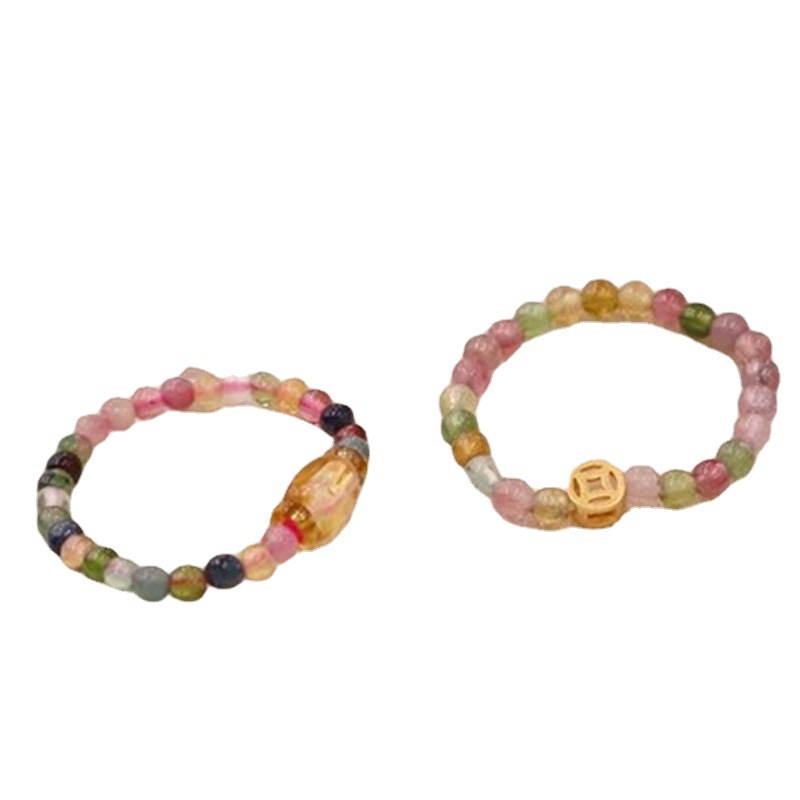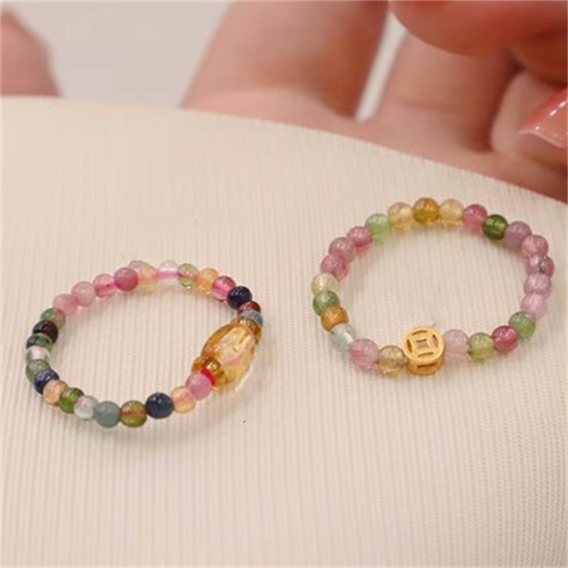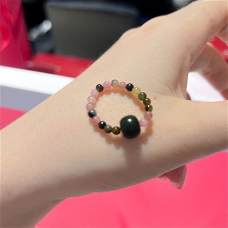 o1cn018w8etq1zellt53c05 2208658623219 0 cibFresh Rainbow Tourmaline Ring Women’s Round Bead Beeswax s925 Silver Coin Fashion Simple Hand Jewelry Women’s Gift Giving
