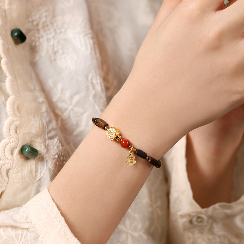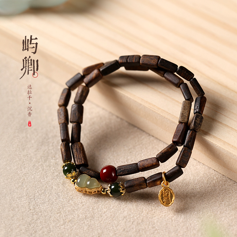 Fu Lu Transfer Beads | Dara Dry Agarwood Square Bead Bracelet Original Retro National Trend Good Luck Creative Gift Bracelet