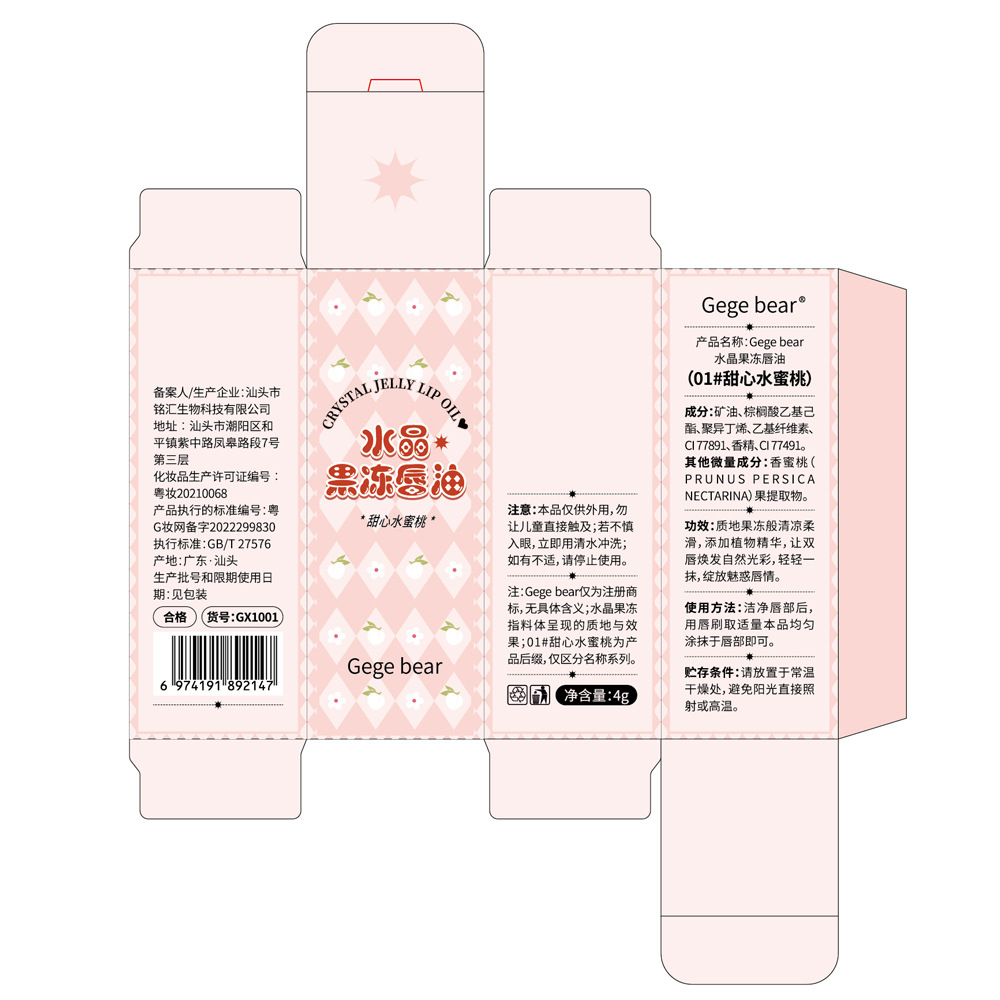 Gege bear Crystal Jelly Lip Oil Domestic Exfoliating and Desalinating Lip Pattern Lip Lotion High Value Lip Essence