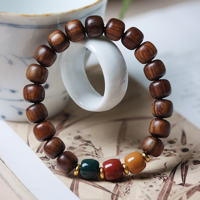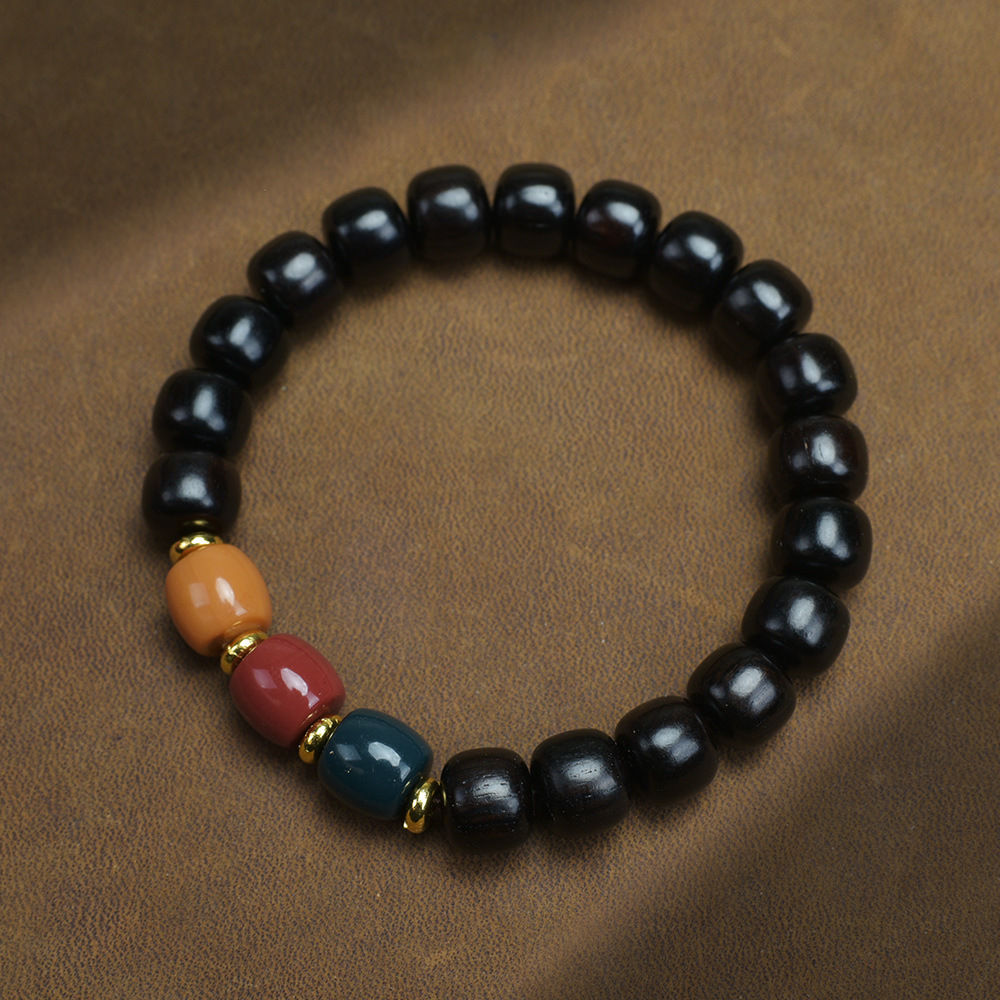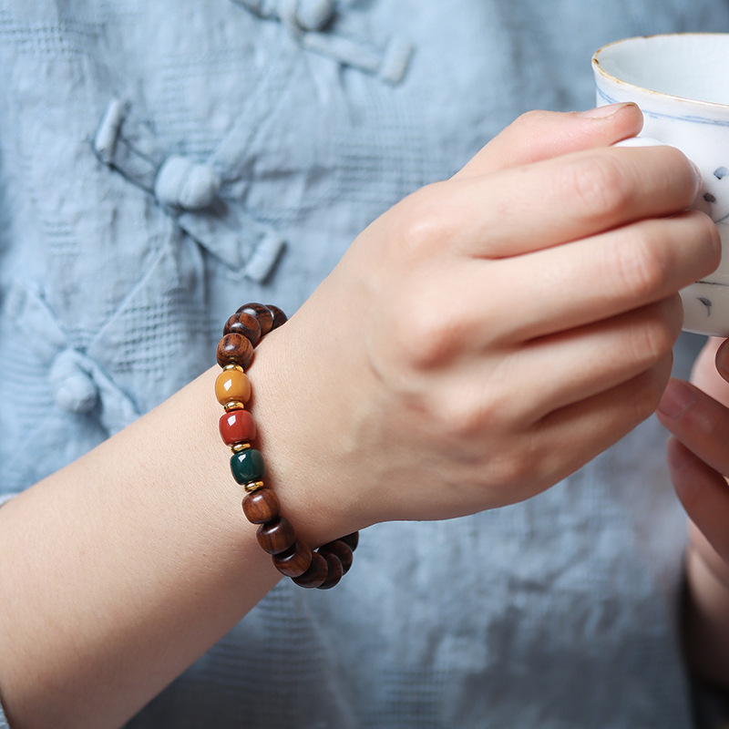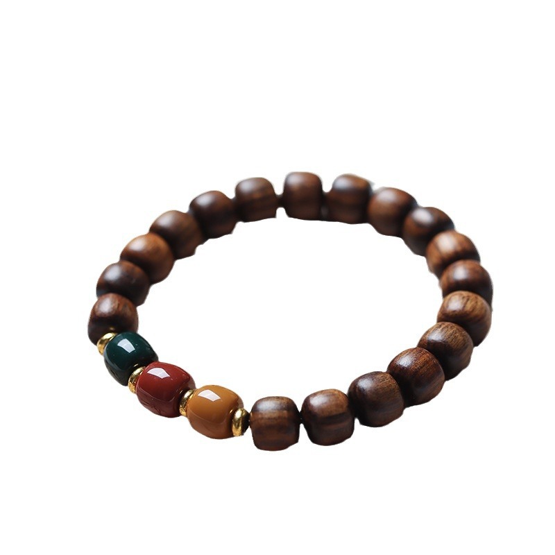 Guofeng Black Rosewood Bead Handstring New Chinese Sandalwood Old Beads Alashan Wen Play Buddha Bead Bracelet Woven