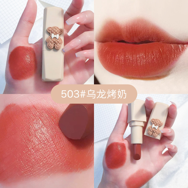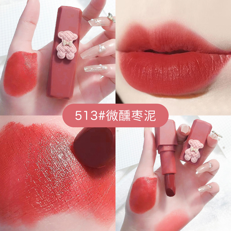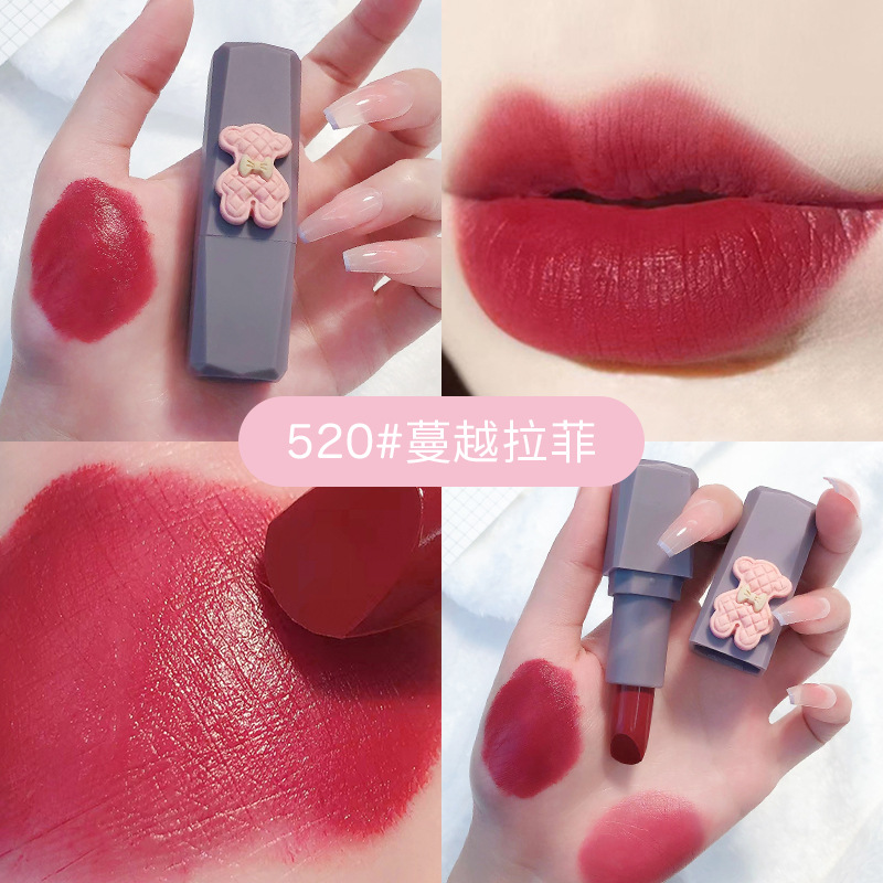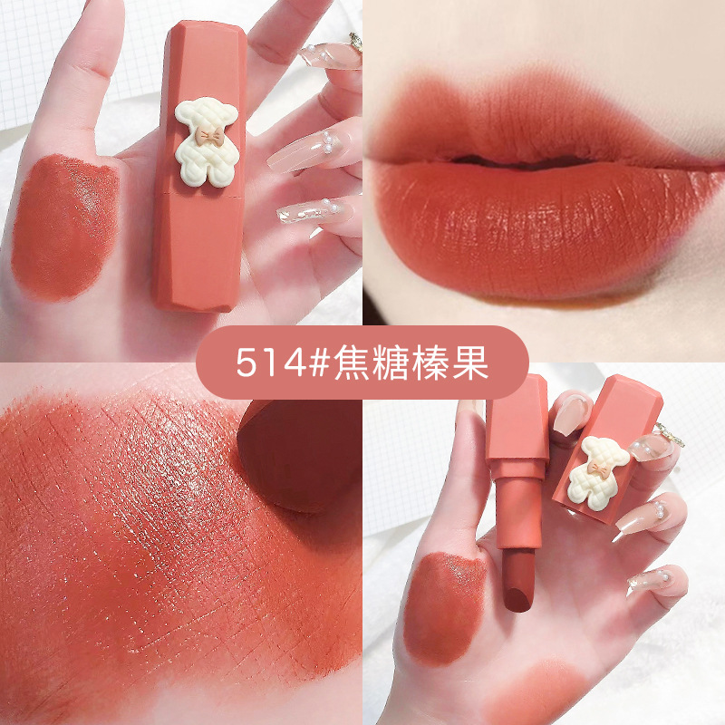 Hengfang little cute bear soft candy matte lipstick velvet matte color white lipstick girl heart student cheap makeup