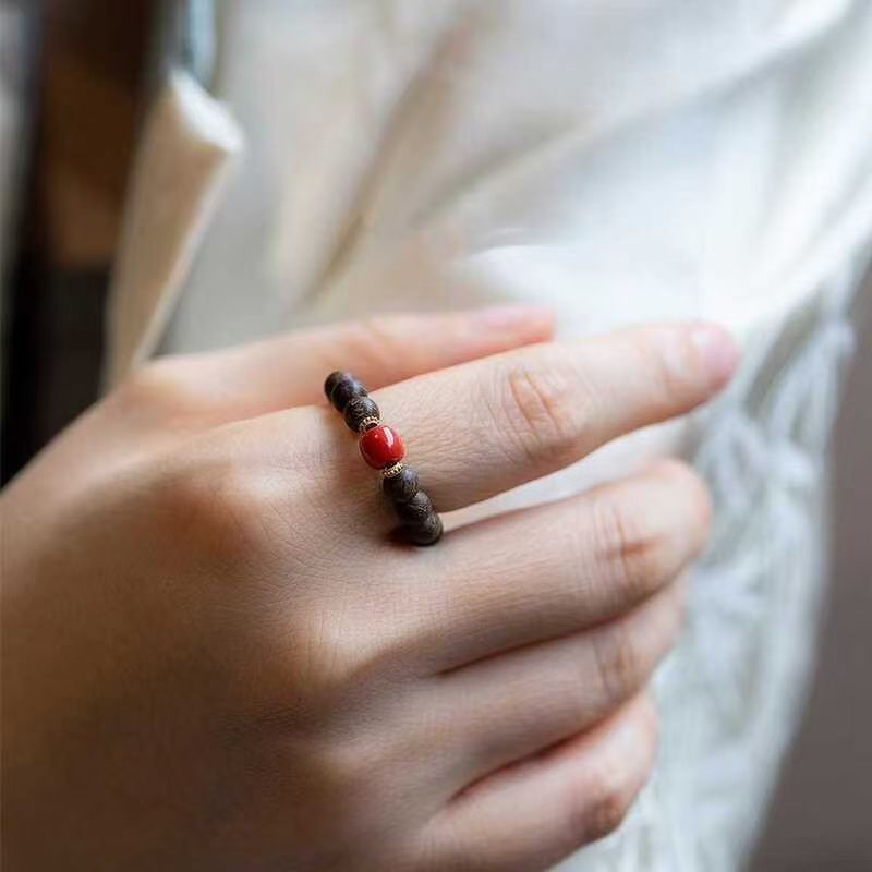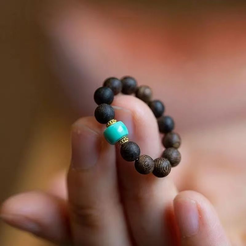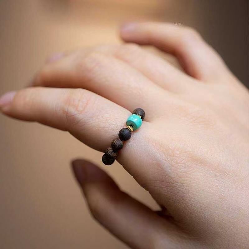 Hot Selling Original Handmade Qinan Nine-Point Agarwood Ring Millet Beads Agarwood Zakiram Fortune Ring Turquoise