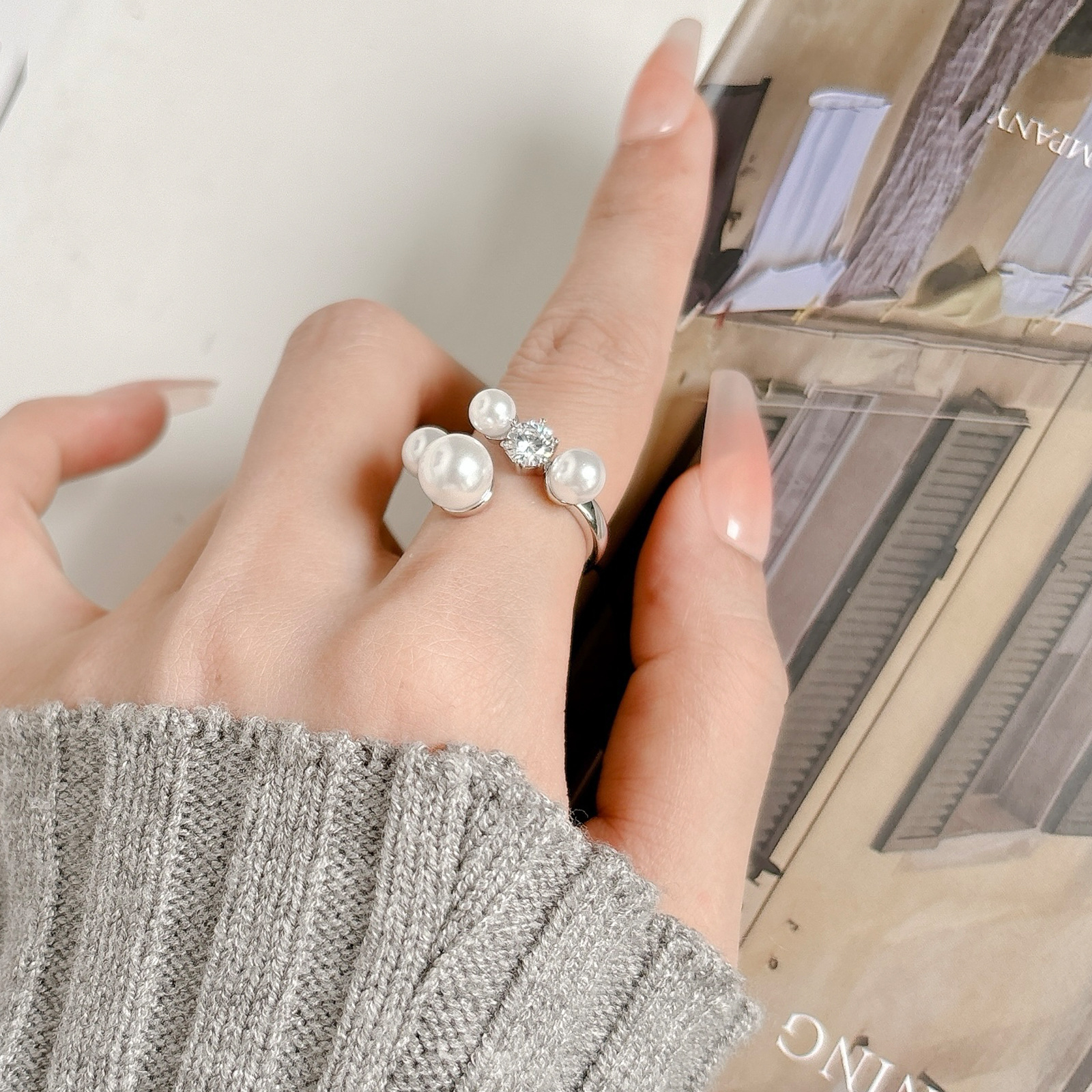 Ins Pearl Zircon Open Ring Elegant Ring Women’s Niche High-End Accessible Luxury Style Personalized Fashion Index Finger Ring