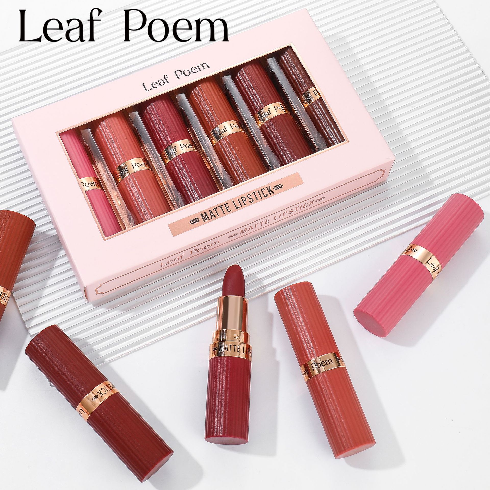 LEAF P0EM Europe and the United States Good Luck Feng Shui Health Wealth makeup suit six matte lipstick is not easy to fade fog waterproof lipstick