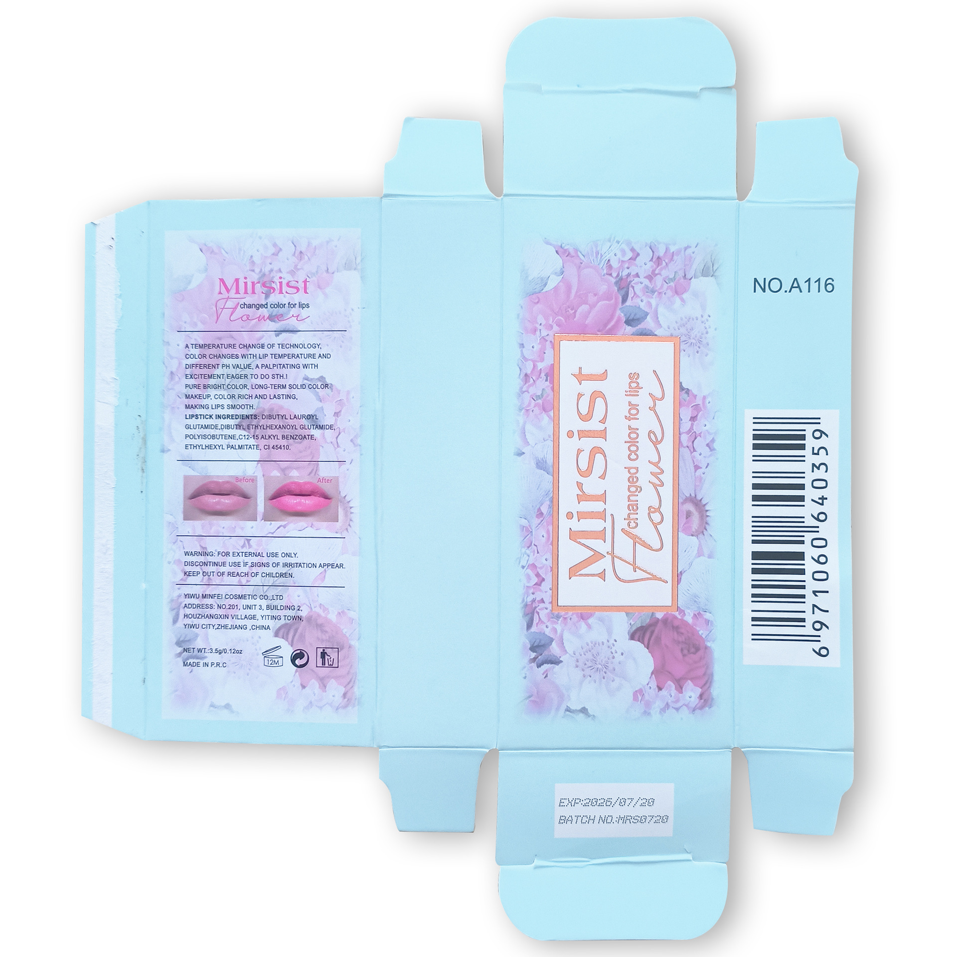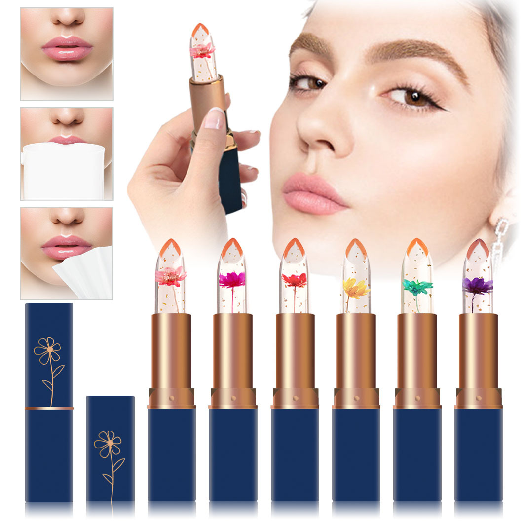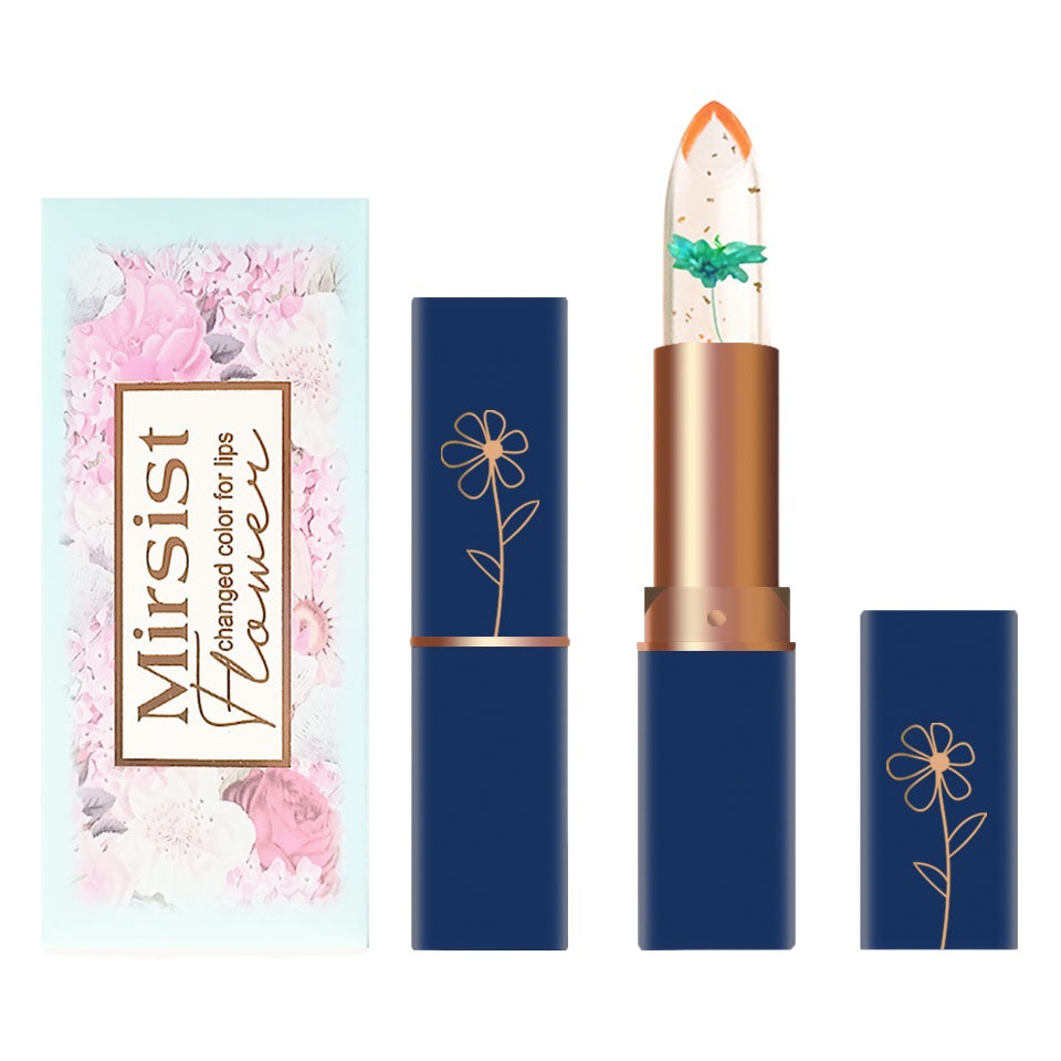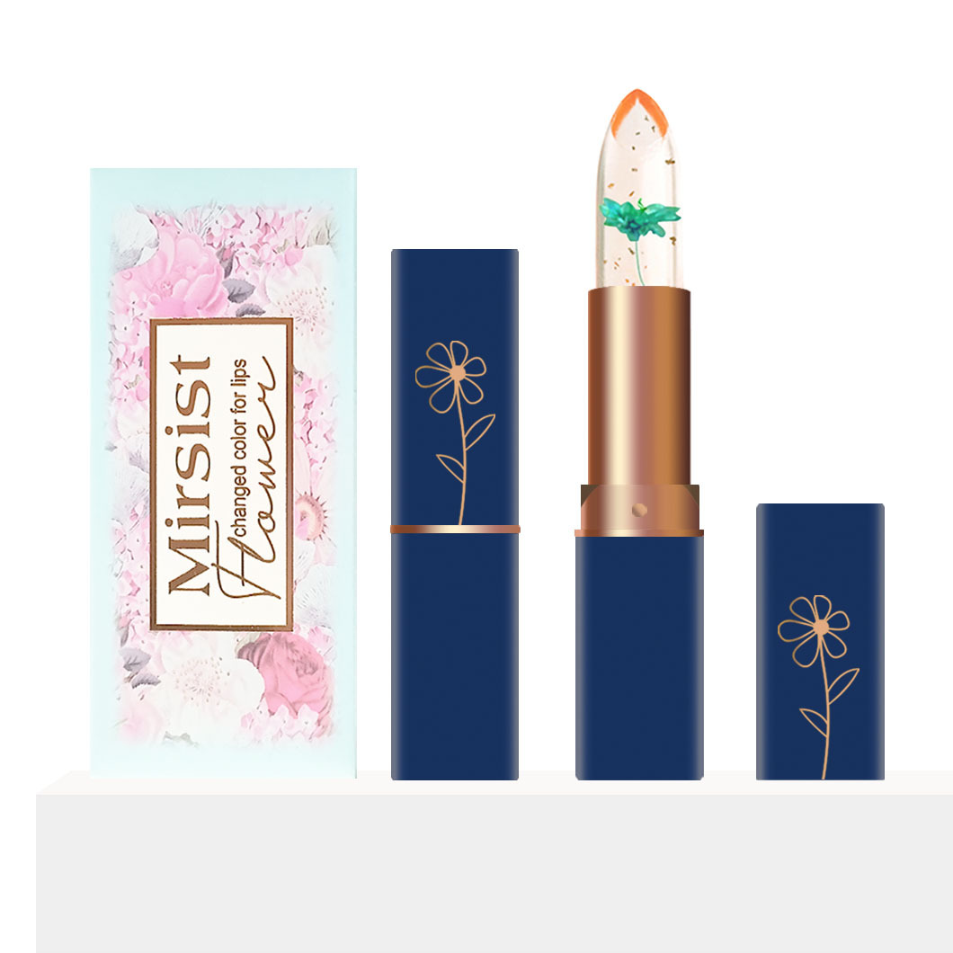 Mirsist Deep Blue Tube Crystal Clear Jelly Lipstick Gold Foil Small Fresh Flower Color-Changing Moisturizing Lip Balm Temperature-Sensitive Lipstick