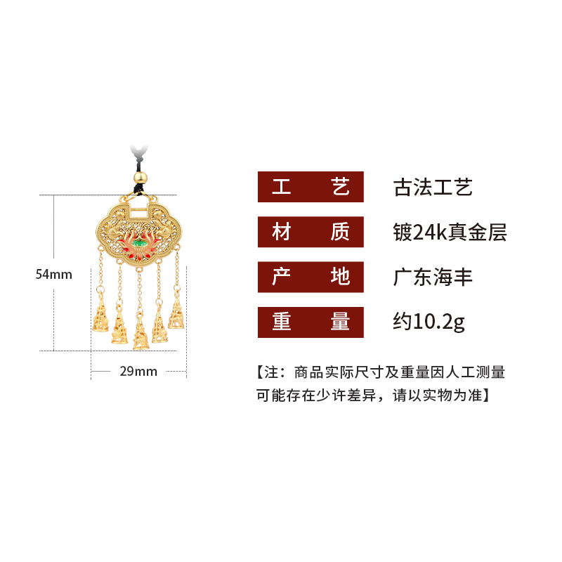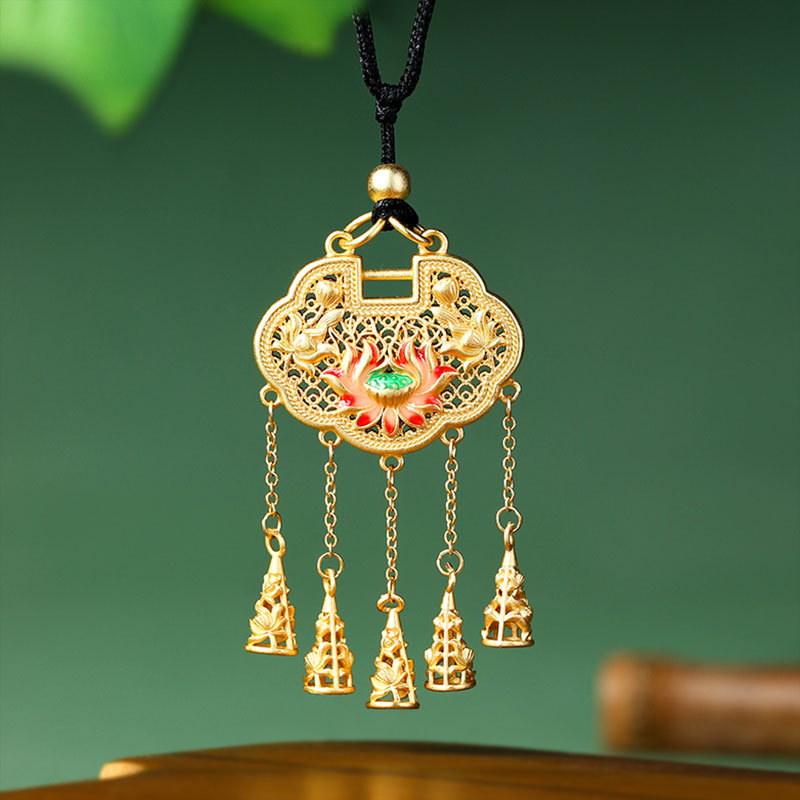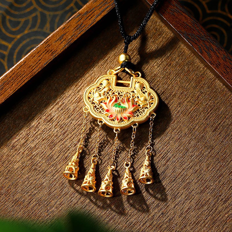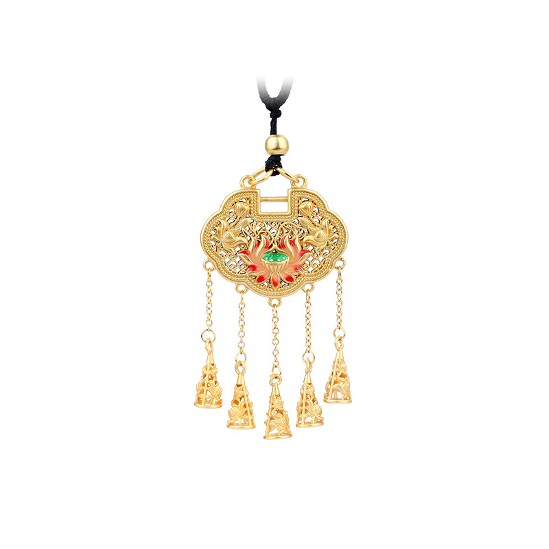 National tide cold enamel craft good luck lotus ruyi longevity lock tassel pendant retro hanfu men’s and women’s necklace