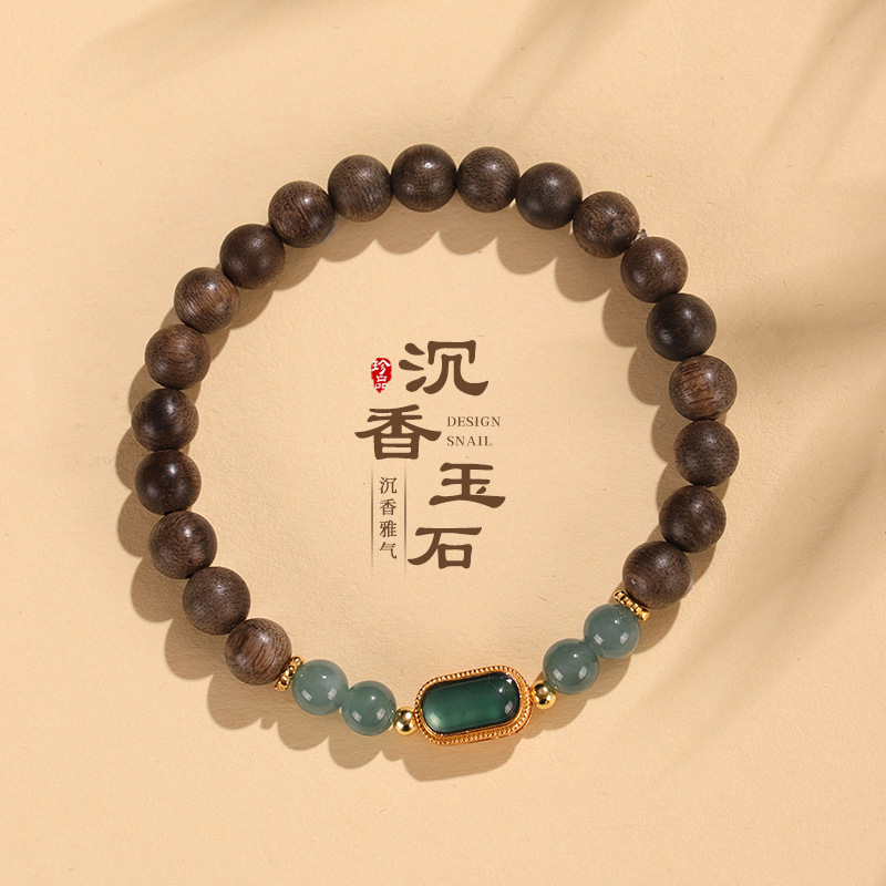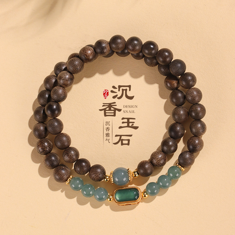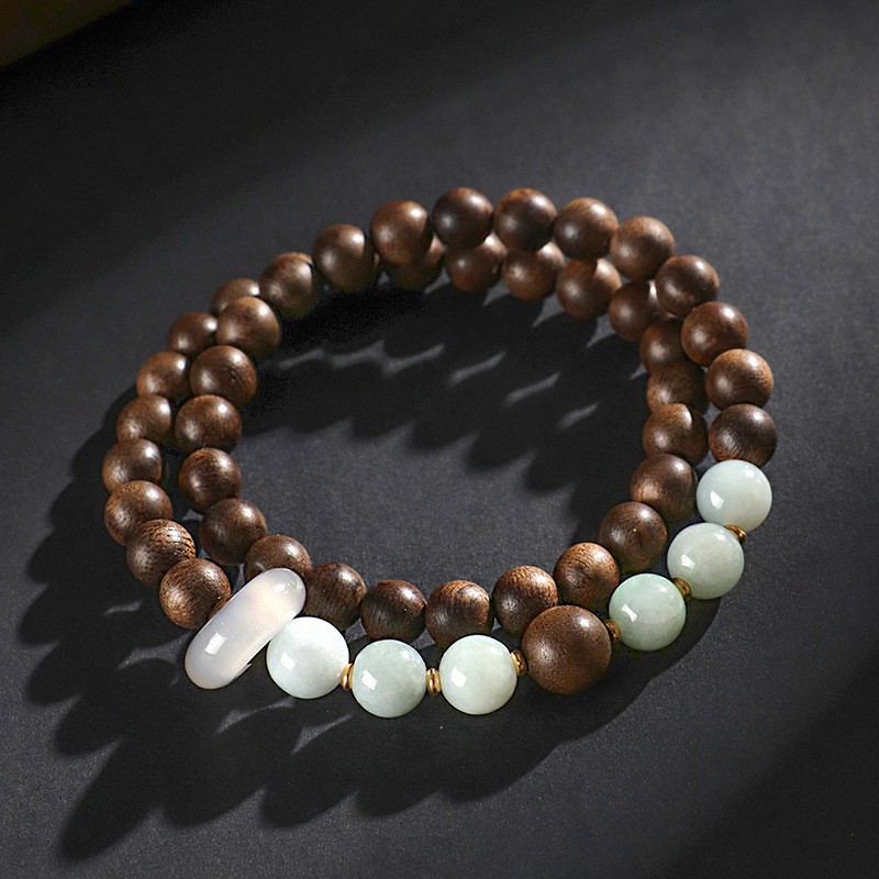 Women's agarwood bracelet, Double circle agarwood bracelet for women, Agarwood jade bracelet