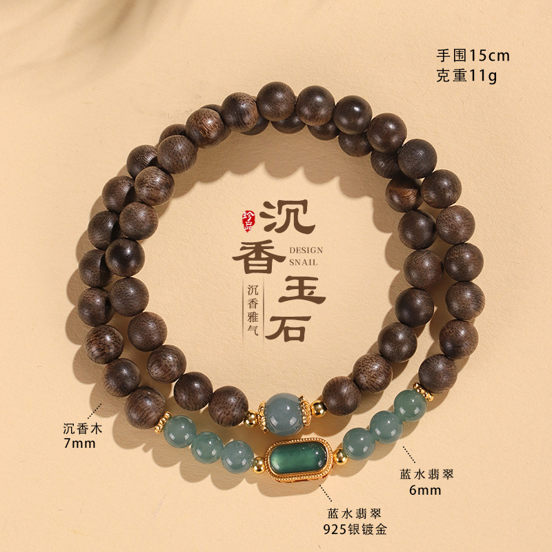 o1cn01lsajmq27pwzkamnmh 2201255607846 0 cibNatural Aquilarius Bracelet Female Blue Water Emerald Jade Stone New Chinese Sandalwood Sandalwood Emerald Double Circle Stacked Wear Emerald Bracelet