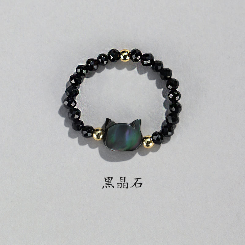 Tourmaline brave, Rice Pearl Brave, Moonstone Pixiu, Rice Pearl Gold Beads, tourmaline loop style, Yellow Crystal Gold Beads, Tourmaline gold beads, Facet White Crystal Kitten, Cut Surface Black Spar Cat, Tourmaline brave ring B