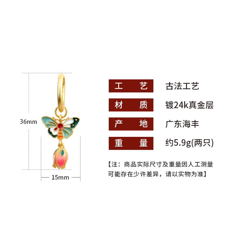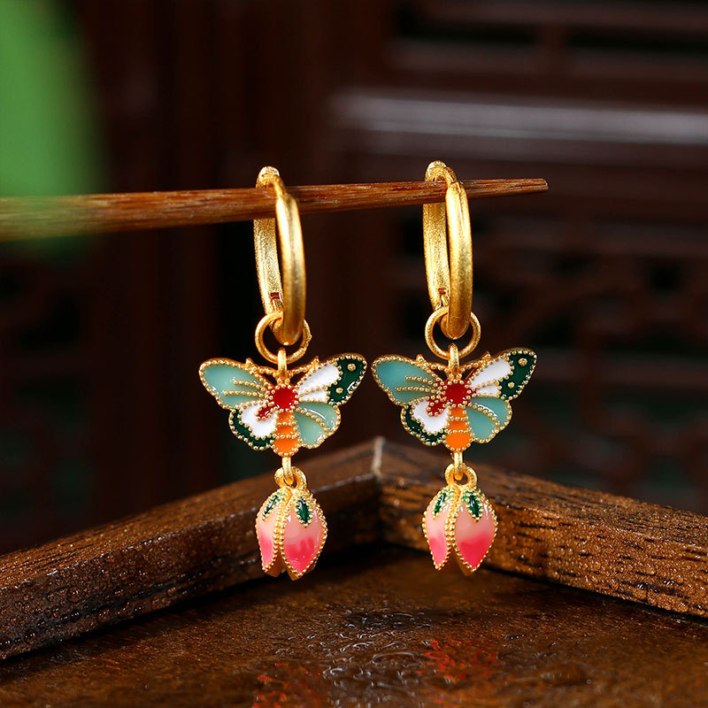 o1cn01ucybwo2nqp0v6drtt 2200655039958 0 cibNew Chinese Enamel Guofeng Butterfly Earrings Women’s Light Luxury High-end Ear Studs 2024 New Style Elegant Retro Earrings