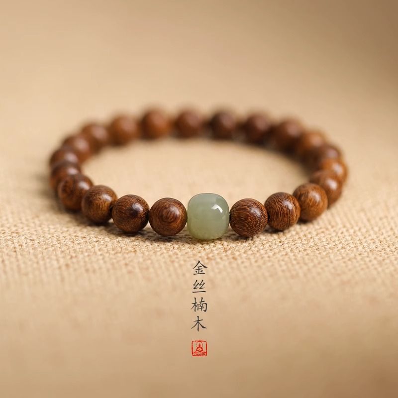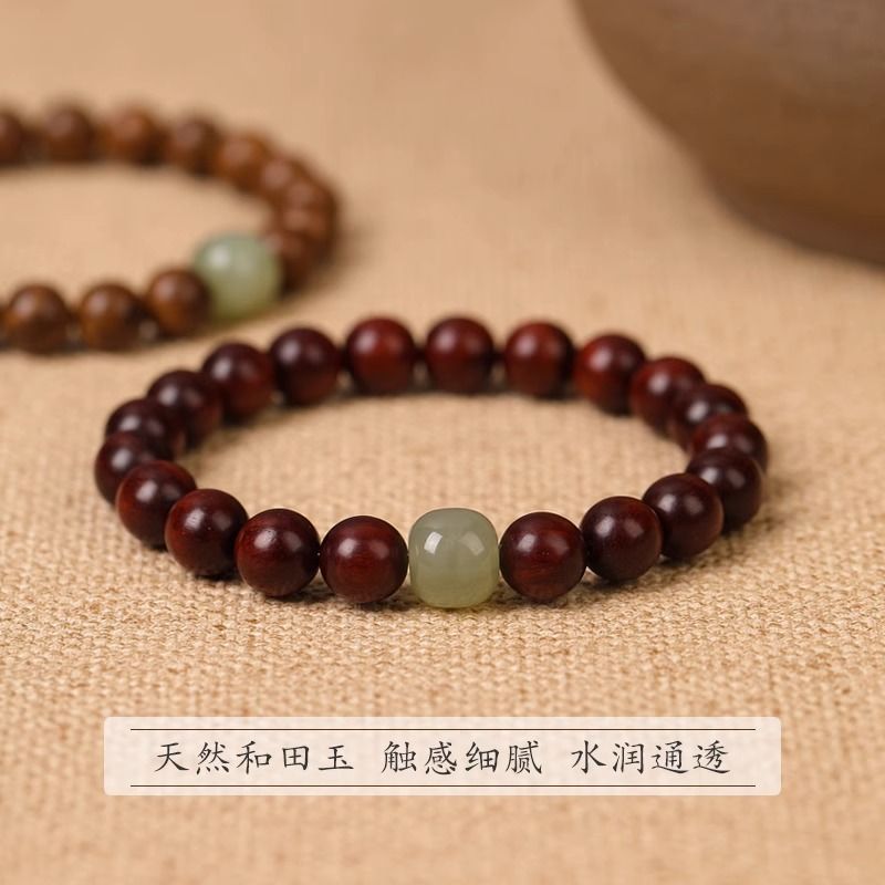 o1cn01j5h8371nlqhxwqlkv 1927281610 0 cibNew Chinese Style Red Sandalwood Bracelet with Small Leaves Simple Still Ebony Wooden Buddha Beads Golden Silk Sandalwood Bracelet Hetian Jade Top Beads