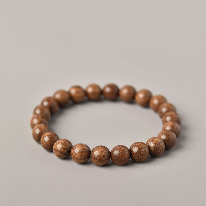 New Chinese Style Red Sandalwood Bracelet with Small Leaves Simple Still Ebony Wooden Buddha Beads Golden Silk Sandalwood Bracelet Hetian Jade Top Beads