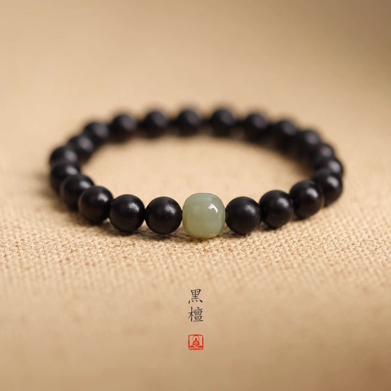 Be the first to review “New Chinese Style Red Sandalwood Bracelet with Small Leaves Simple Still Ebony Wooden Buddha Beads Golden Silk Sandalwood Bracelet Hetian Jade Top Beads”