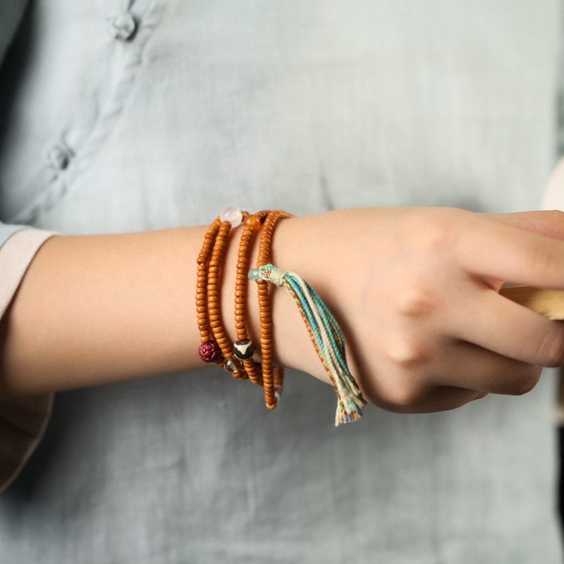 Original Design Olive mini Bead Multi-circle Bracelet with Cinnabar Beads Turquoise Red Riding Book Bracelet