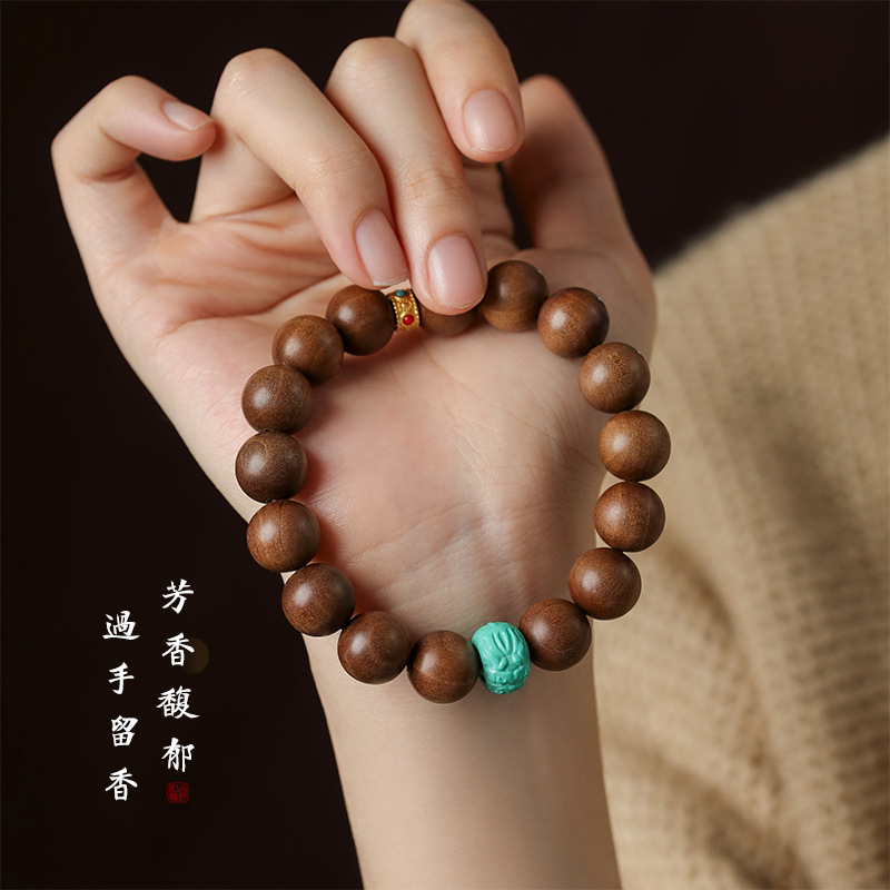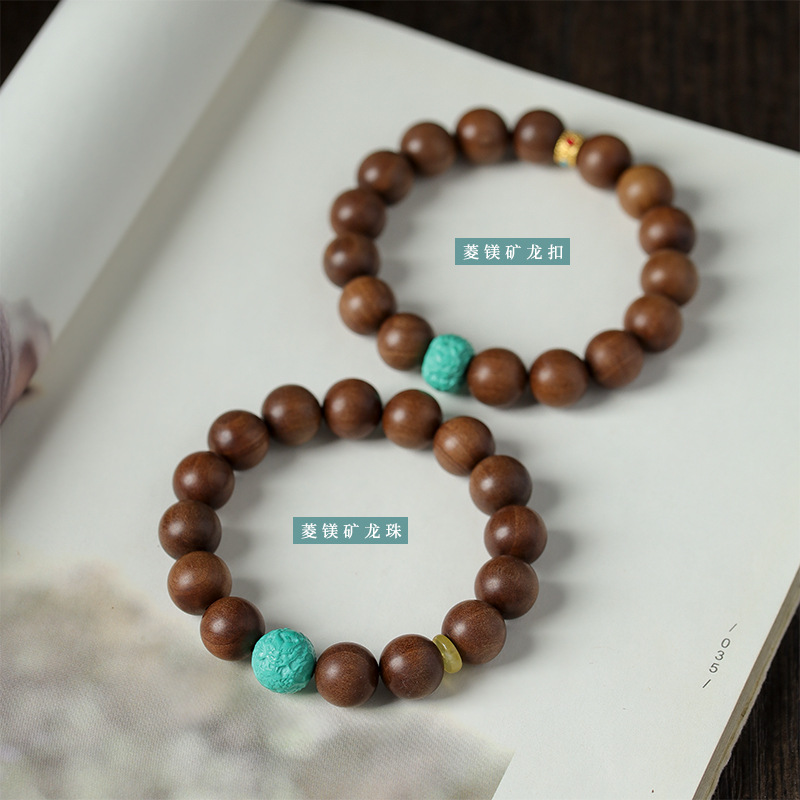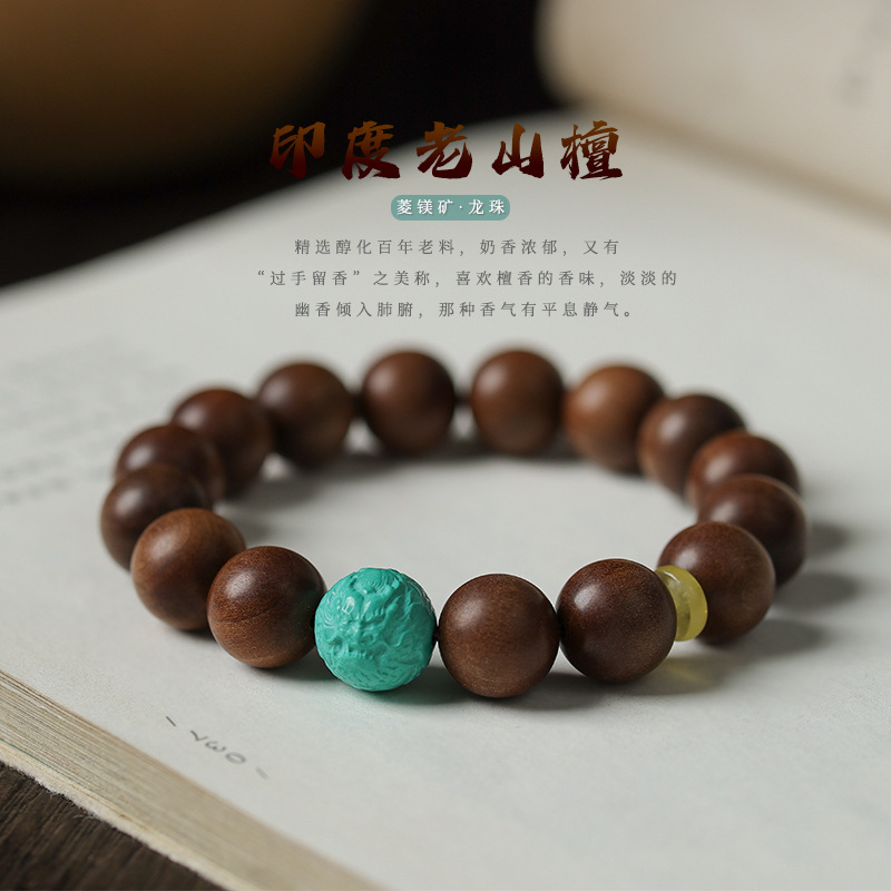 Original Ecological Old Material High Oil High Density Indian Old Mountain Sandalwood Magnesite Turquoise Dragon Ball Couple Bracelet