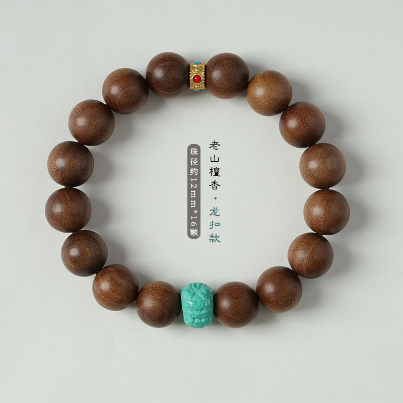 o1cn012buh0k1xm1klvqf2n 2207533192965 0 cibOriginal Ecological Old Material High Oil High Density Indian Old Mountain Sandalwood Magnesite Turquoise Dragon Ball Couple Bracelet