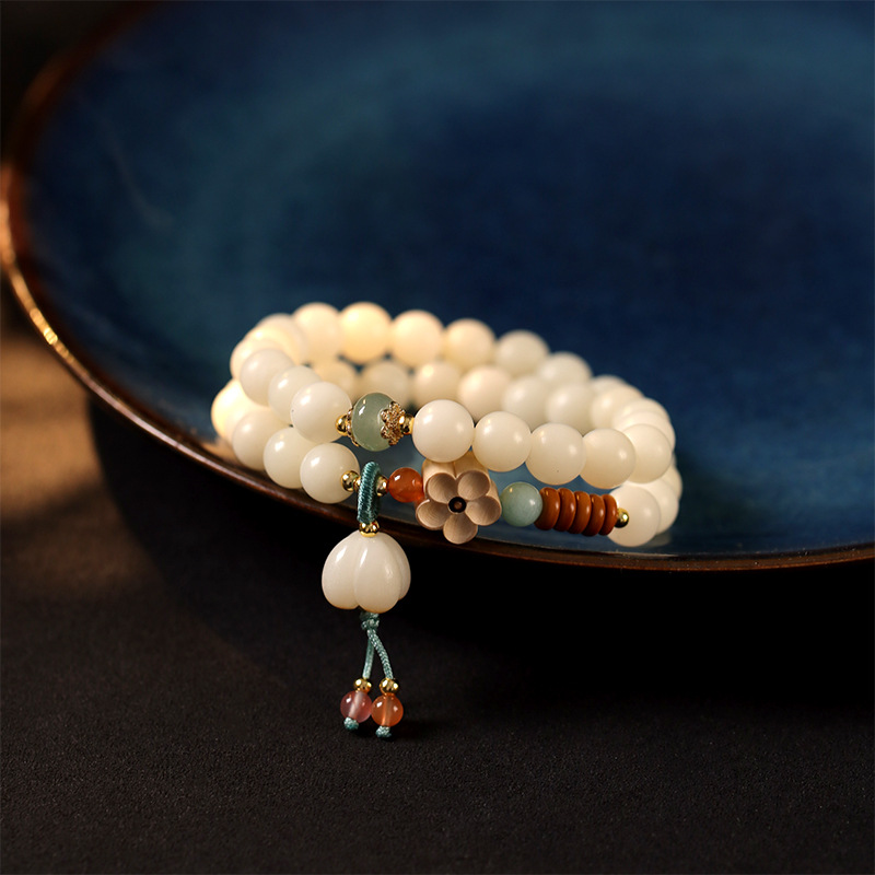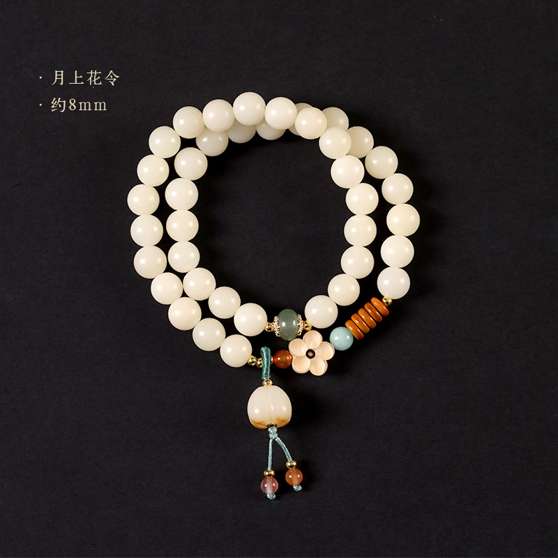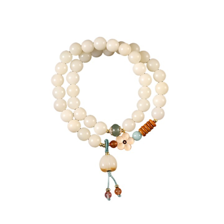 o1cn01znktnb1xm1iswlkzw 2207533192965 0 cibOriginal ecology white bodhi root text play double circle bracelet boxwood carving plum blossom national wind Buddha bead plate play bracelet wholesale