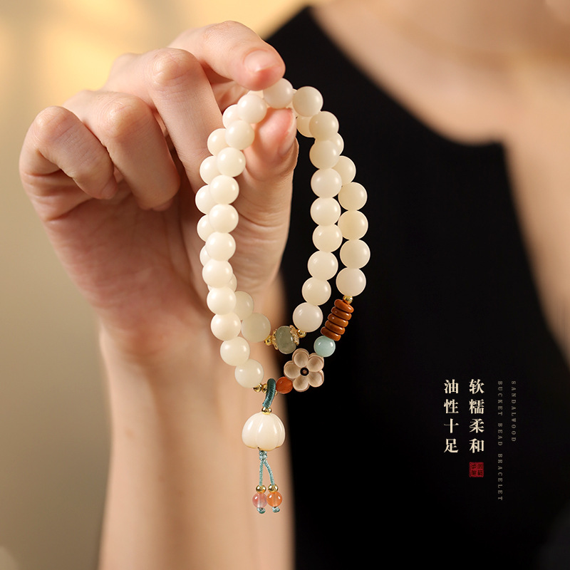 Original ecology white bodhi root text play double circle bracelet boxwood carving plum blossom national wind Buddha bead plate play bracelet wholesale
