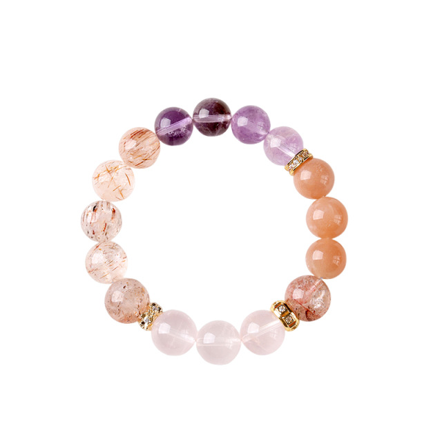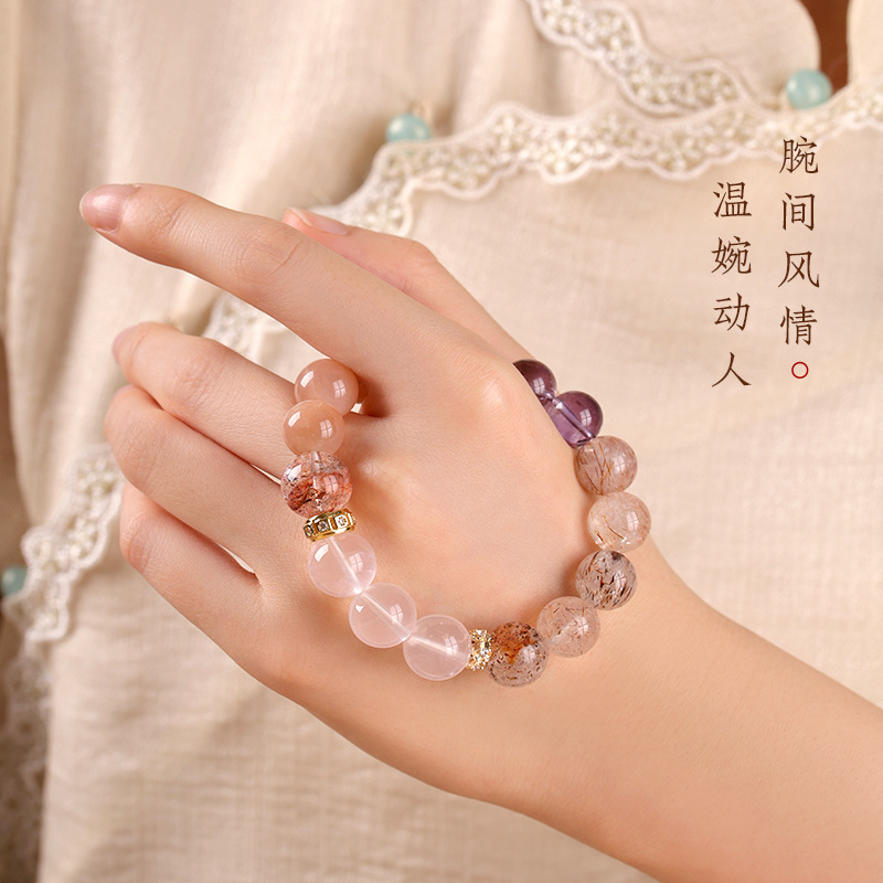 Original Fresh and Healing Colorful Multi-Treasure Crystal Bracelet Niche High-End Accessible Luxury Super Seven Pink Crystal Amethyst Bracelet