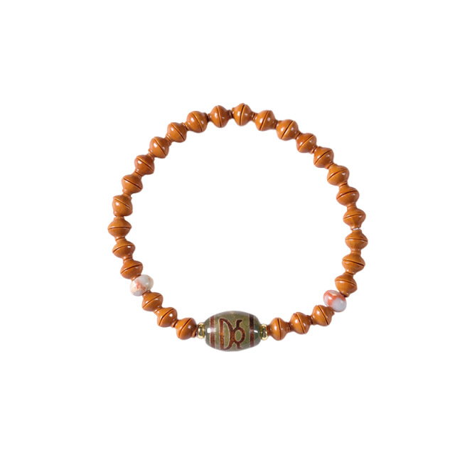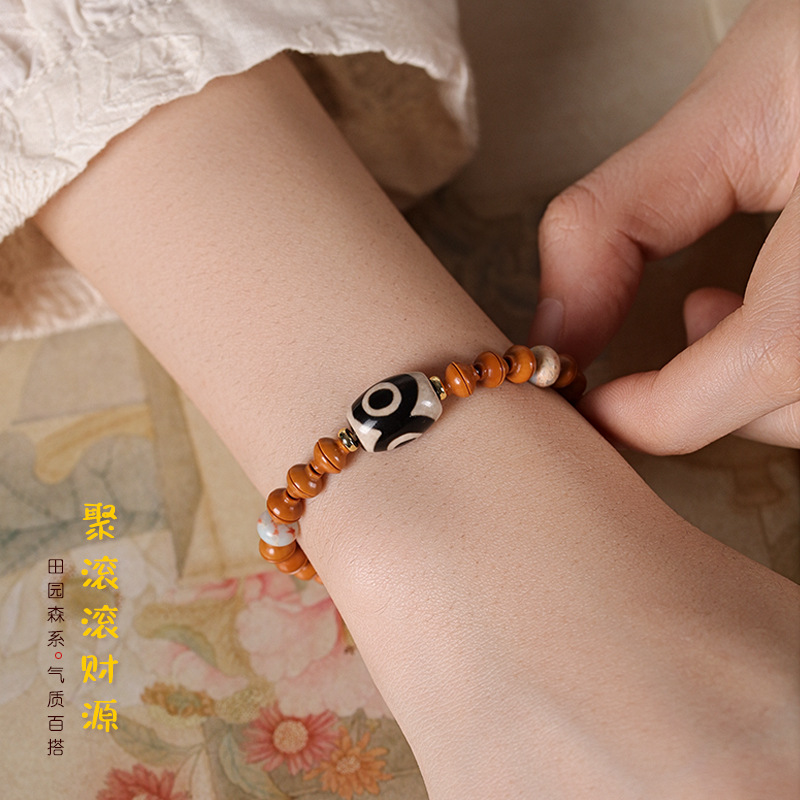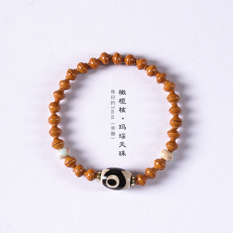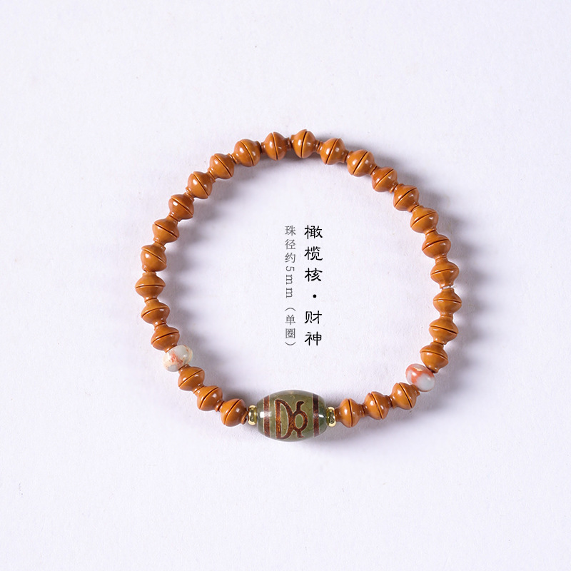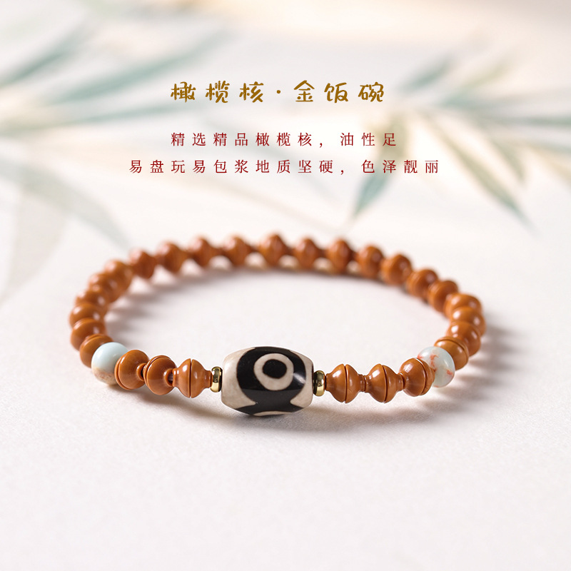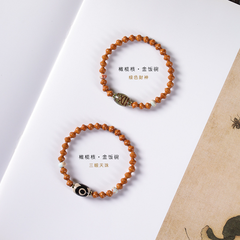 Original Handmade Boutique Olive Kernel Golden Rice Bowl Agate God of Wealth Three Eyes Tianzhu Mori Men’s and Women’s Fine Literary Play Bracelet