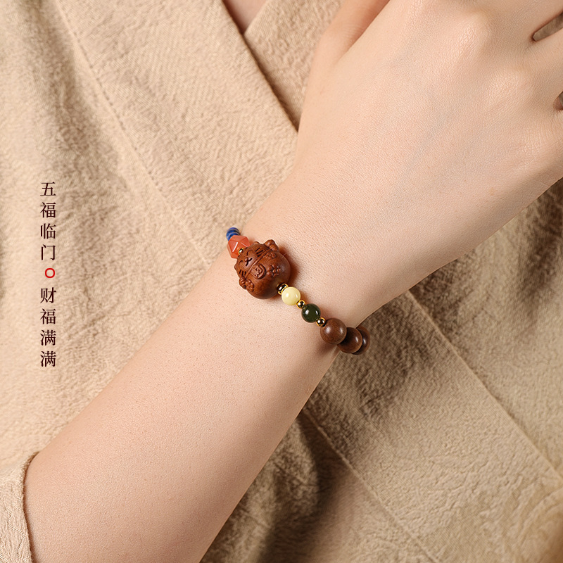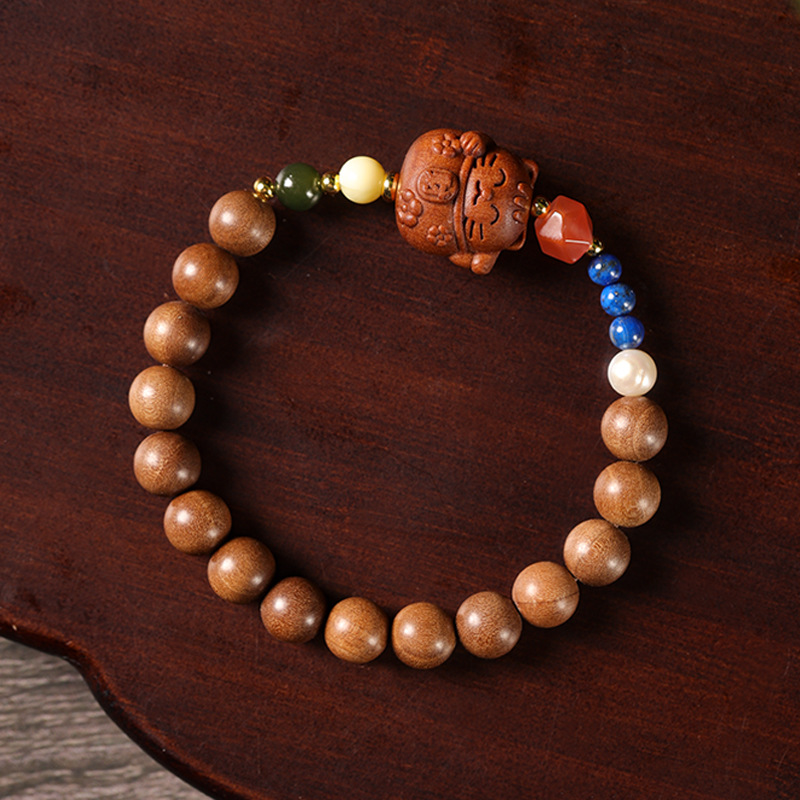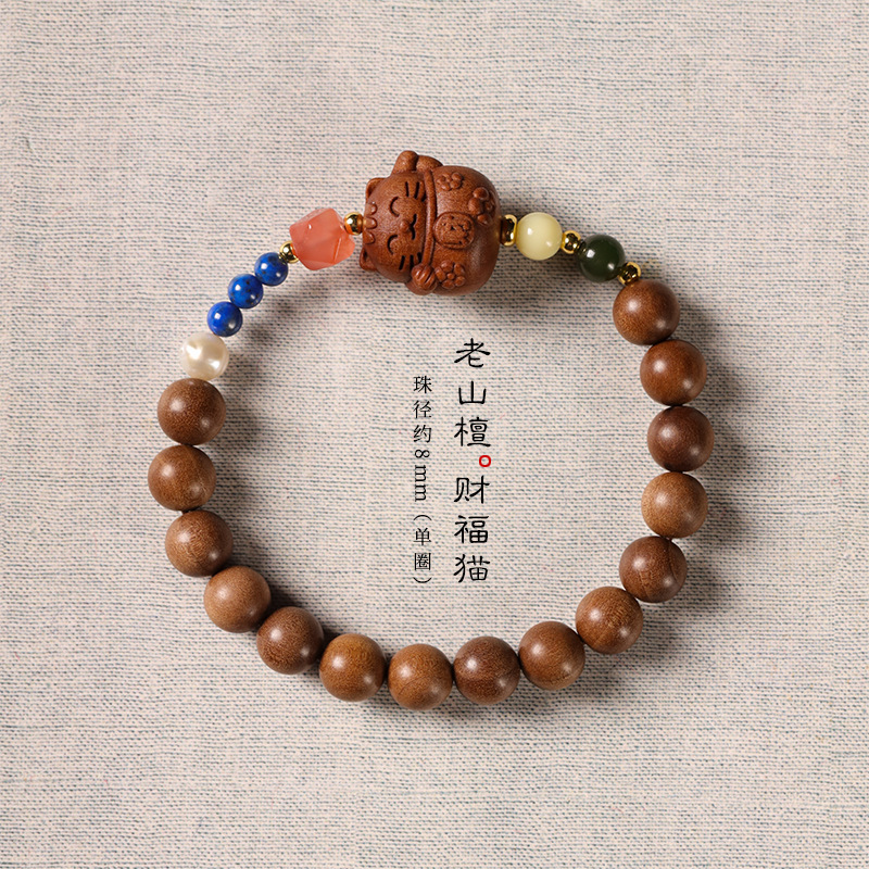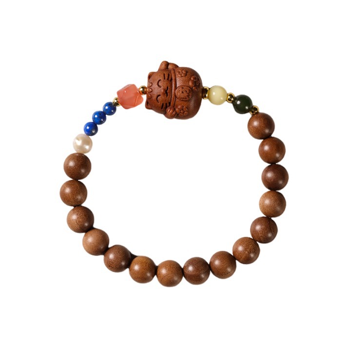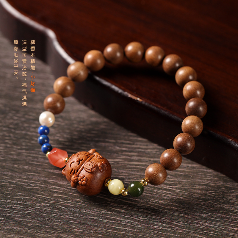 Original New National Tide Artistic Female Temperament Wooden Bracelet Partial Area Laoshan Sandalwood Crossing Hand to Leave Fragrance Small Wealth Cat Bracelet