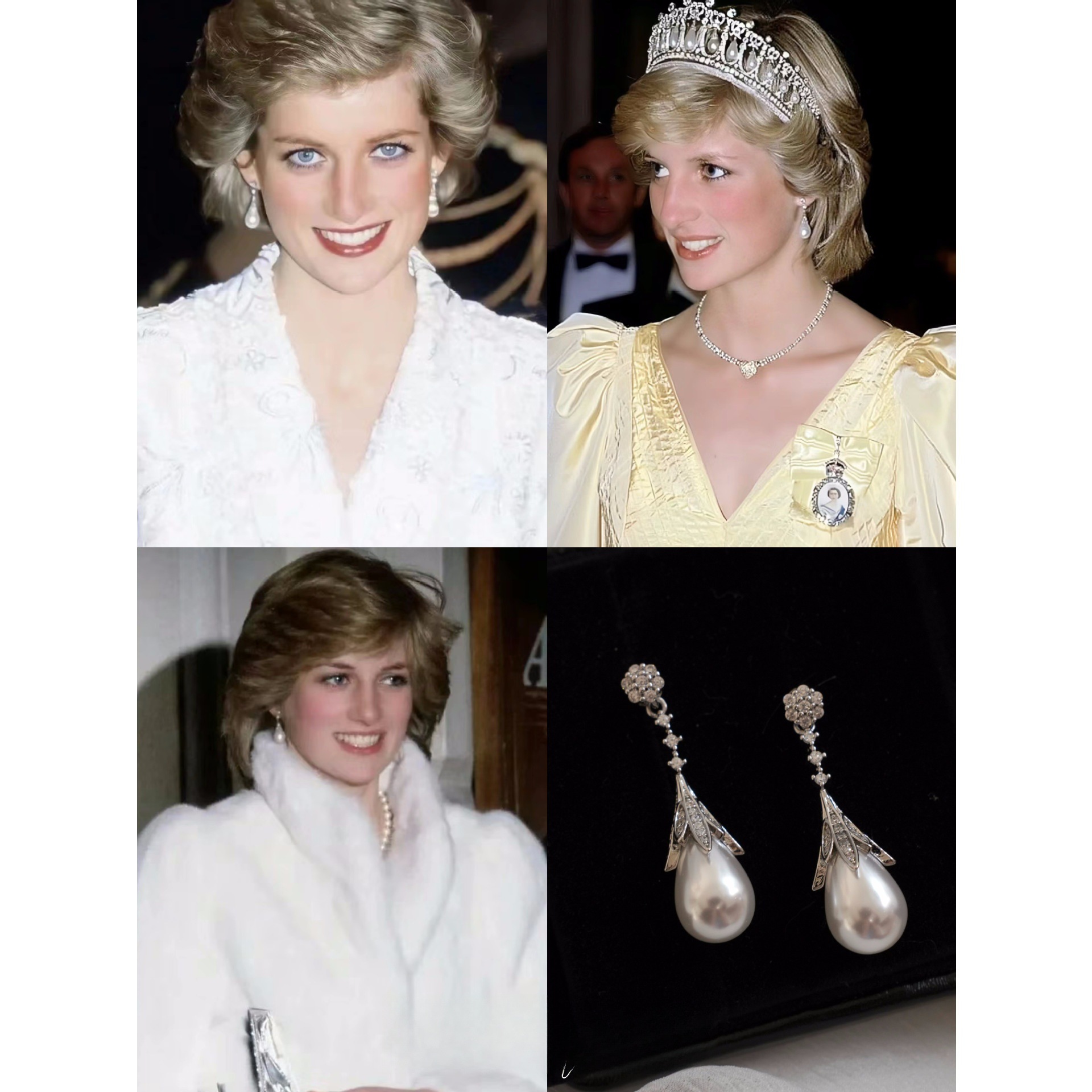 “Princess Diana” French Classic Retro High-end Light Luxury Elegant Shining Water Drop Pearl Earrings Ear Clip
