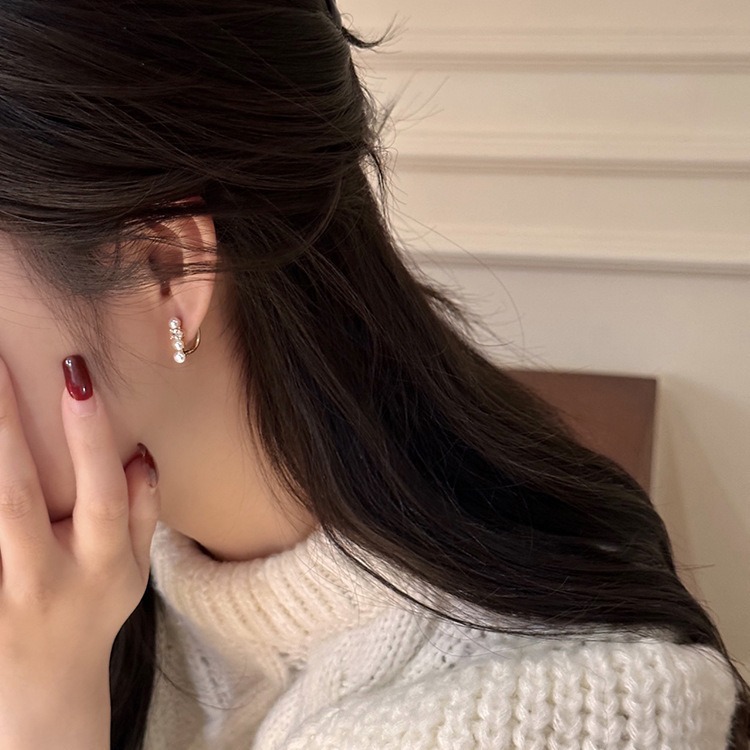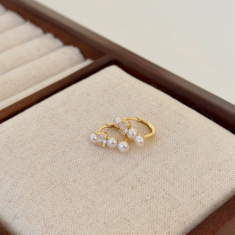 [real gold plating] temperament simple zircon millet beads earrings high sense of pearl earrings daily commuter earrings