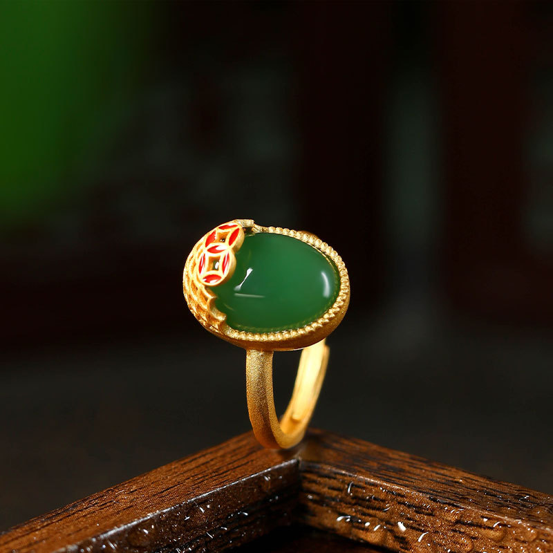 Be the first to review “Red Riding Book Explosions Real Gold Plating with Emerald Imitation Jade Wealth Rolling Egg Face Ring National Tide Antique Jewelry”