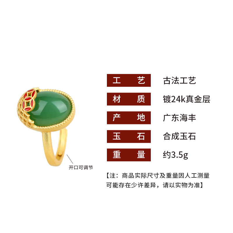o1cn01w9tddm2nqp0wcxsck 2200655039958 0 cibRed Riding Book Explosions Real Gold Plating with Emerald Imitation Jade Wealth Rolling Egg Face Ring National Tide Antique Jewelry